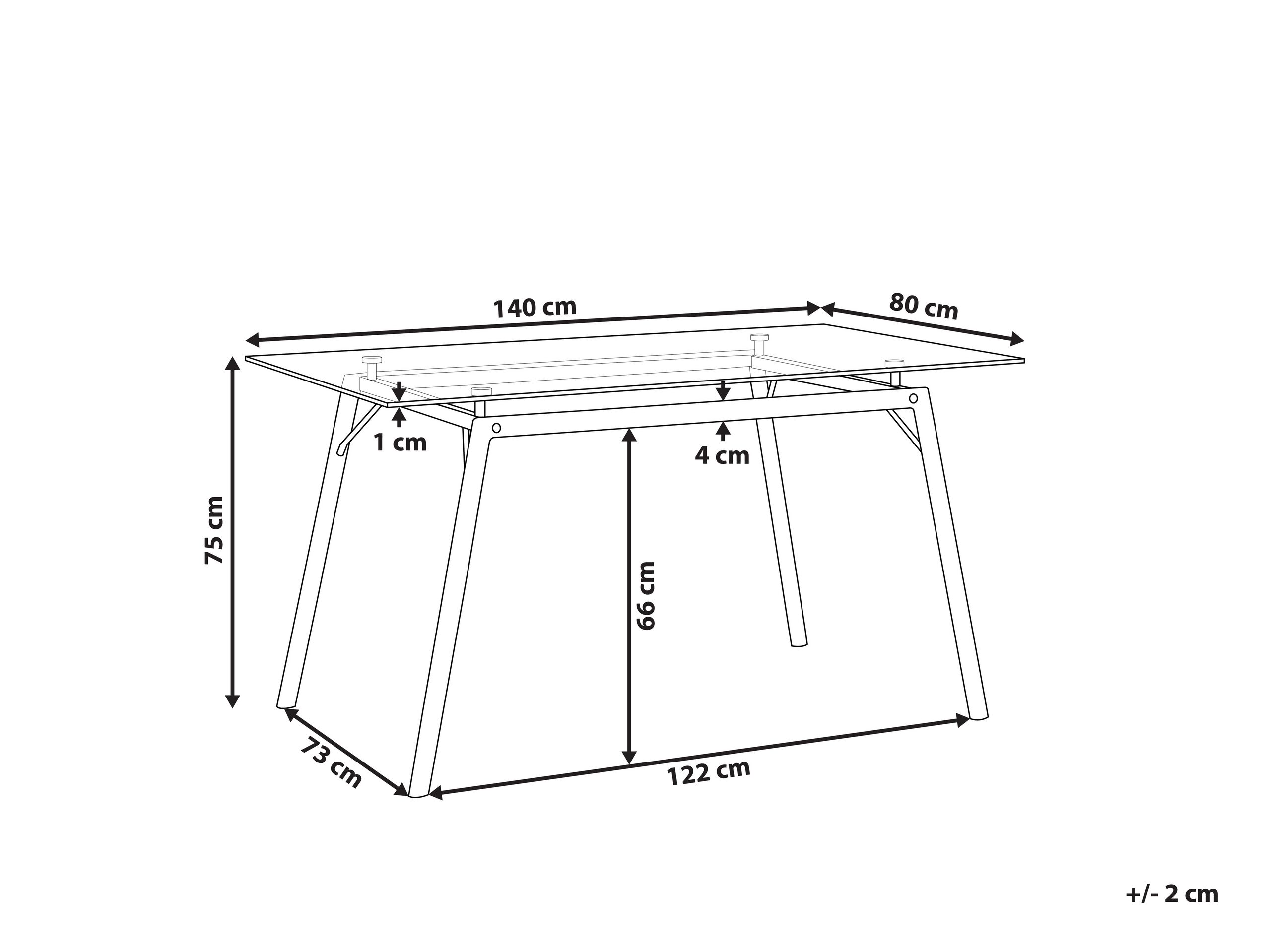 | Libellé | Table à manger transparente / effet bois clair 140 x 80 cm KAMINA |