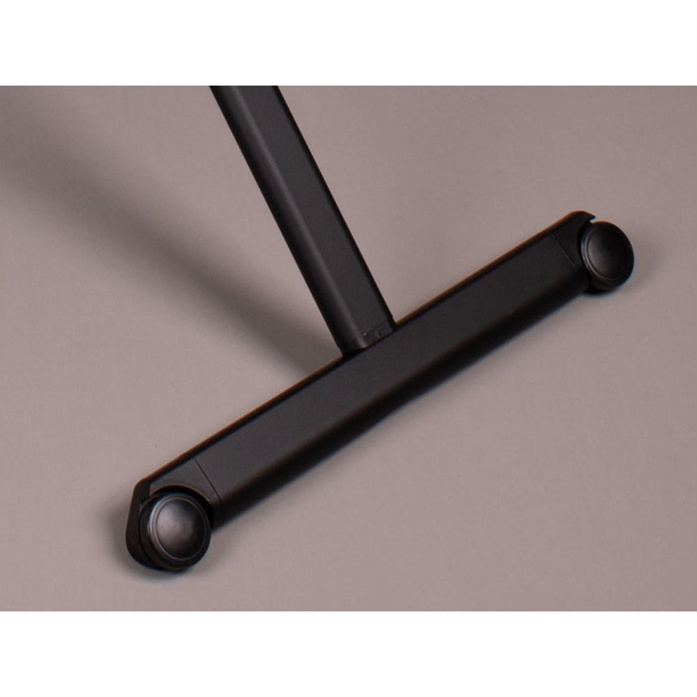 Très facile à déplacer avec ses 2 petites roulettes , facile à ranger car très plate, rigide et avec un plateau suffisamment large et une bonne housse.C'est un bon produit !