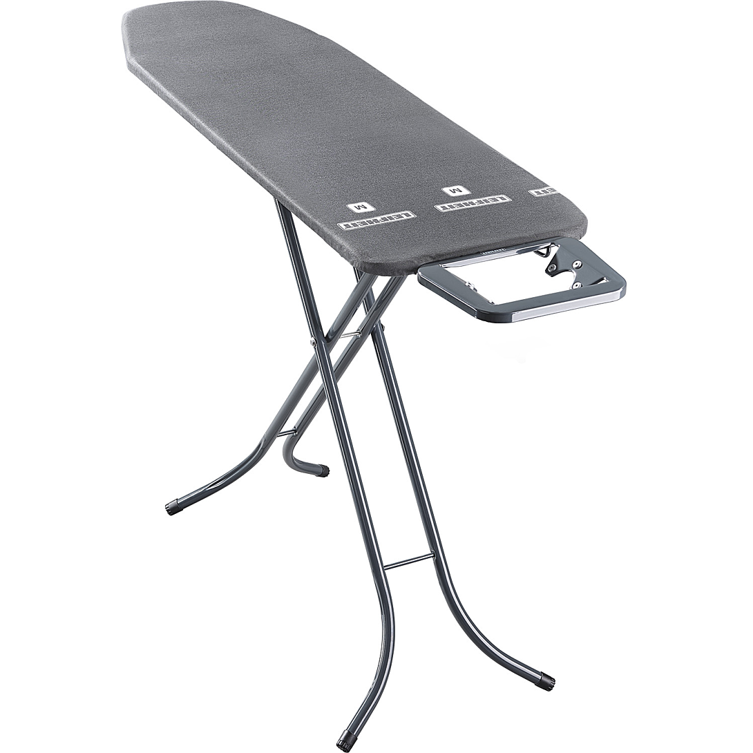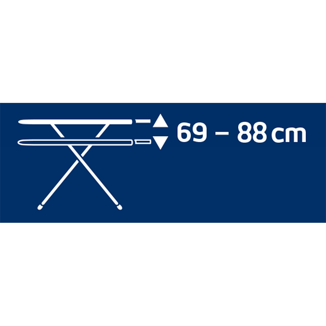 Table à repasser Classic M Black › Surface de repassage : M 120 x 38 cm › Table à repasser en métal déployé › Repose-fer fixe › Hauteur réglable de 69 à 88 cm › Piétement en tube › Taille : 145 x 40 x 6 cm › Made in Europe › Garantie 3 ans
