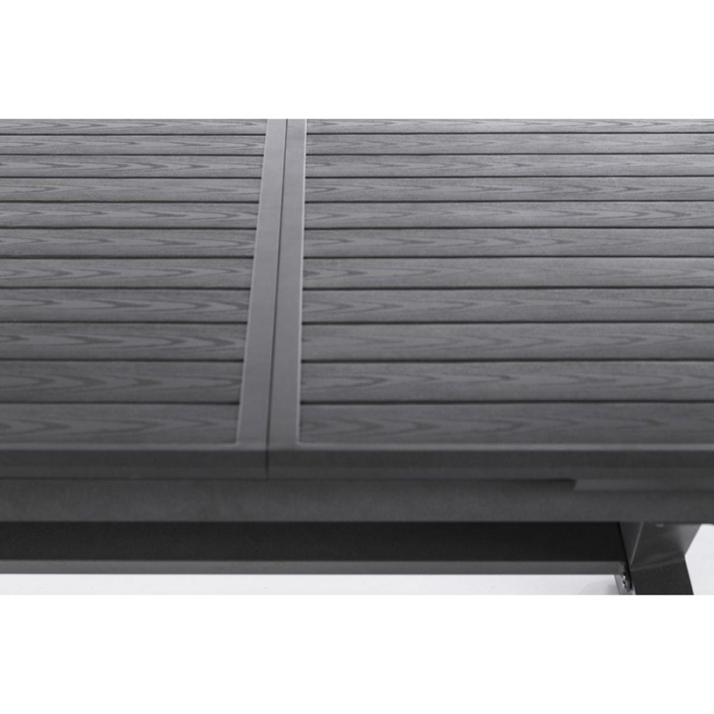 Table Axiome extensible en coloris ardoise granité de la marque Hespéride. Table vendue seule sans siège. Son système de rallonge automatique de 59 cm permet de passer de 8 à 10 personnes très facilement. Pieds ajustables pour compenser les irrégularités du sol et offrir une meilleure stabilité. Conçue pour l'extérieur, la table est en aluminium traité époxy antirouille et protection UV. Compatible avec la housse de protection JJ146746, vendue séparément. A monter soi-même. Garantie 2 ans. Coloris gris, effet bois. En aluminium traité époxy. Dimensions 220/279 cm x 113 cm, hauteur 75 cm. Poids 42 kg.