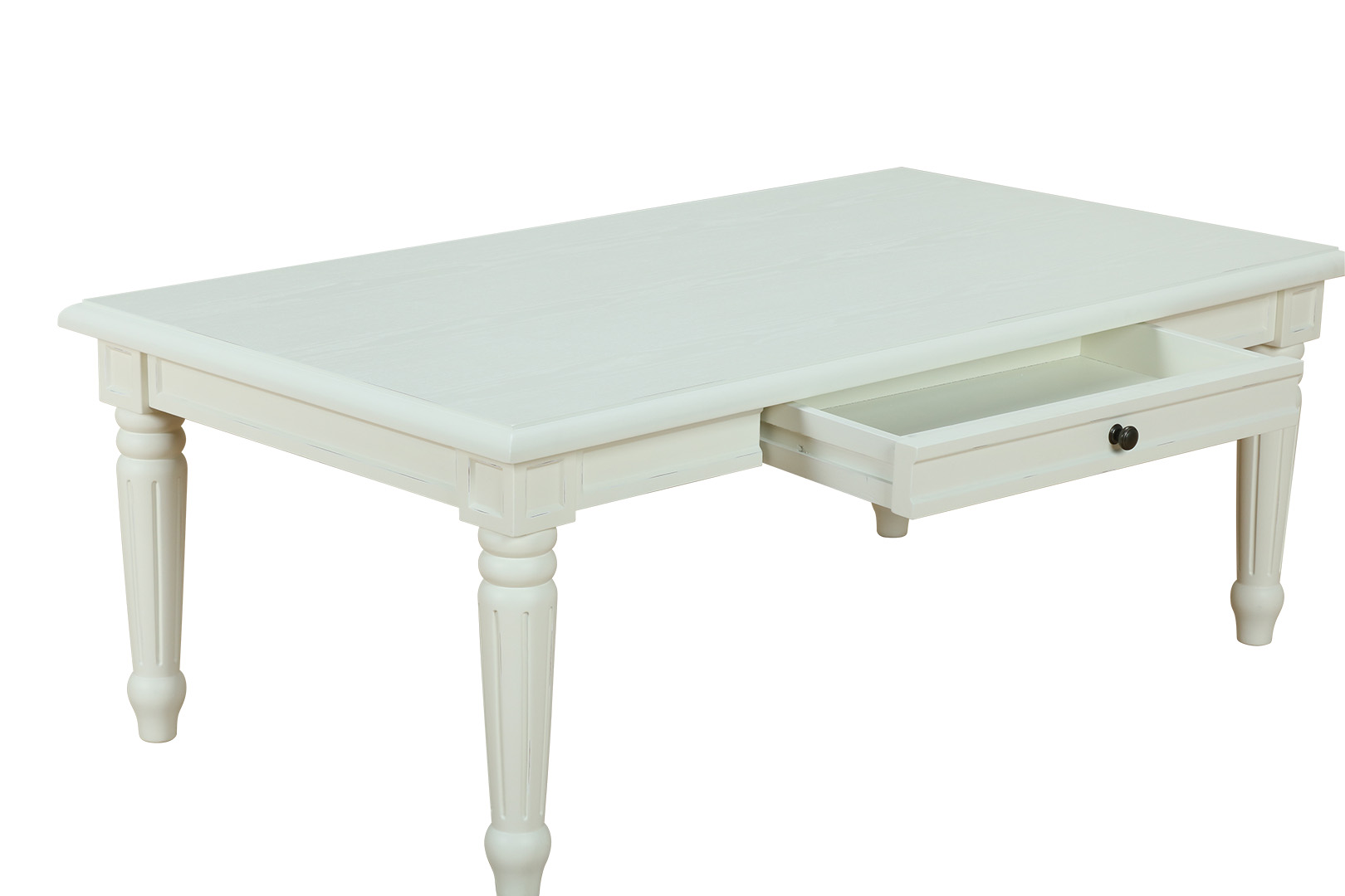 Table basse Amaretta avec 2 tiroirs, blanc antique, patiné antique est une table basse de couleur Blanc qui apporte à la fois style et fonctionnalité à votre intérieur. Table basse Amaretta avec 2 tiroirs, blanche. Meubles solides de qualité avec âme. Design élégant avec patine antique. Un meuble de qualité, élégant, charmant et solide. Ce produit a été créé avec un souci du détail, qui garantit à la fois un attrait esthétique et une grande durabilité. Il est conçu dans un souci à la fois de fonctionnalité et de style, ce qui en fait le choix parfait pour n’importe quelle pièce de votre maison. Les matériaux utilisés sont de haute qualité, ce qui confère au produit une longue durée de vie et lui permet de résister à une utilisation quotidienne. Que ce soit pour le rangement ou comme ajout décoratif, ce produit rehaussera votre décor et apportera plus de confort et d'élégance à votre maison.