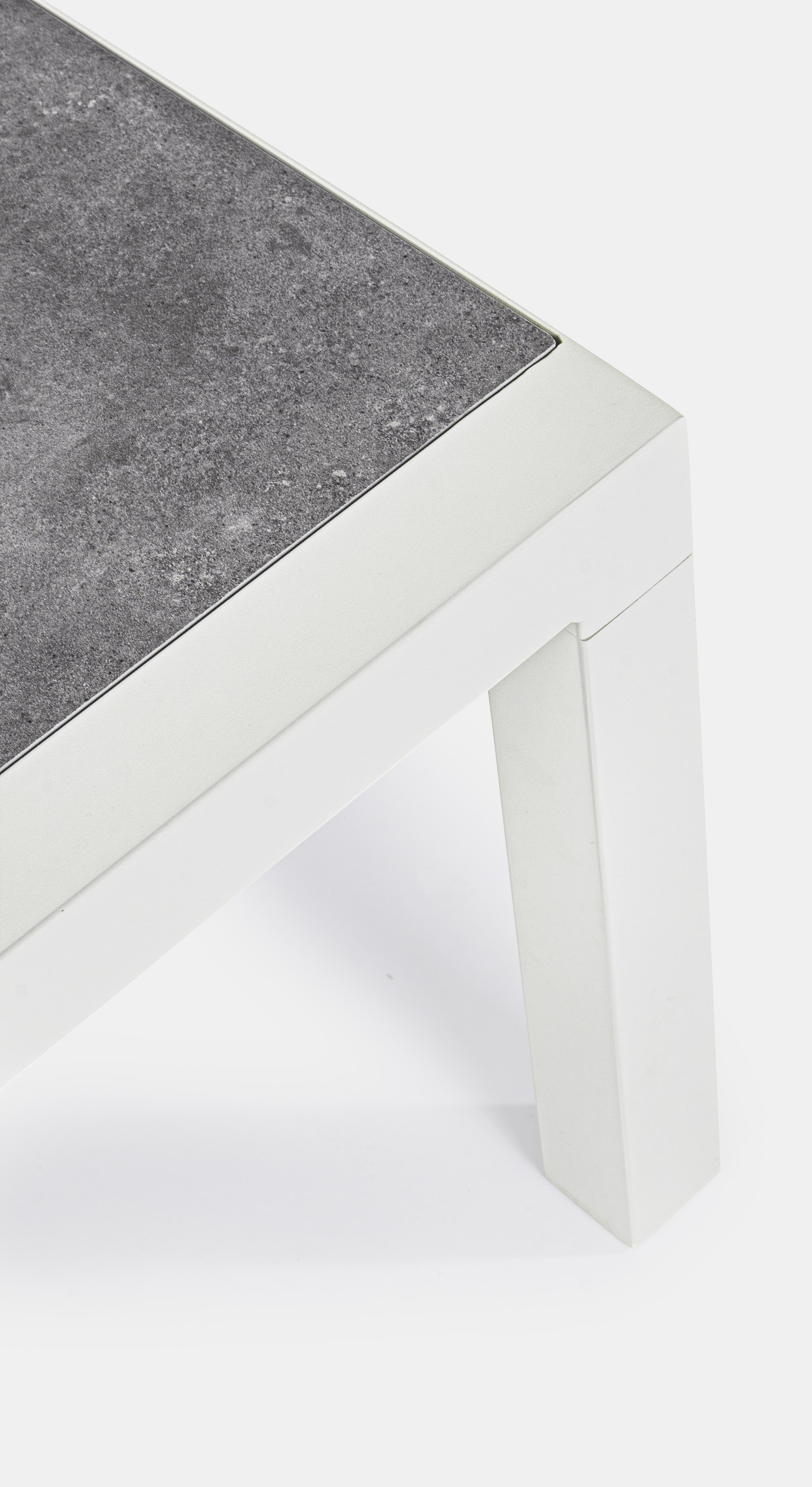 Blanc et gris, cette table basse est d'une classe indéniable. Son plateau est fait en céramique tandis que sa structure est en aluminium. Vous aurez beaucoup de joie à y poser vos affaires mais aussi à profiter de cette table basse de jardin. Vos invités auront envie de vous la subtiliser tant sa beauté est irrésistible. Matière : Aluminium et céramique Couleur : Blanc et gris Dimensions : L 120 x P 70 x H 43 cm Nombre de colis : 1 Fabrication : Espagne A monter Garantie : 2 ans