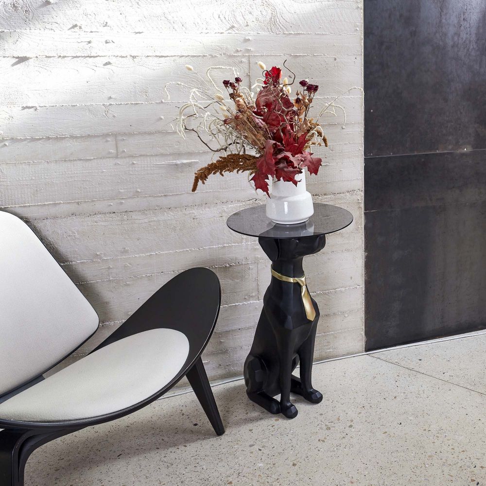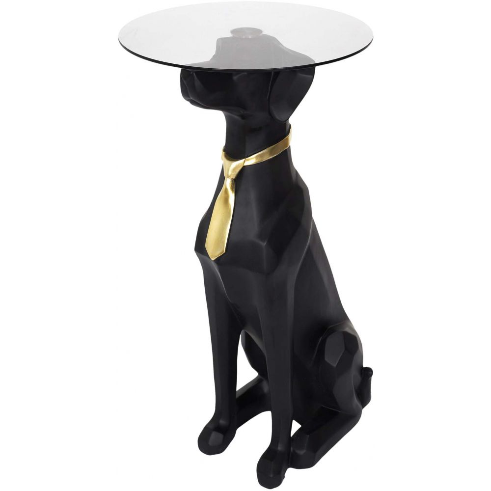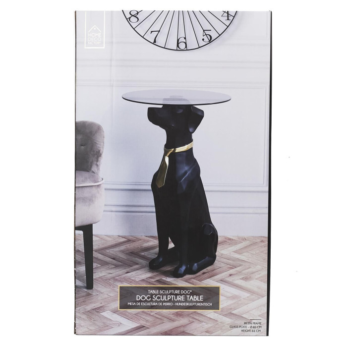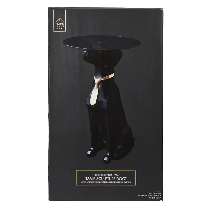 Libellé Table basse déco chien assis plateau en verre 66 cm
