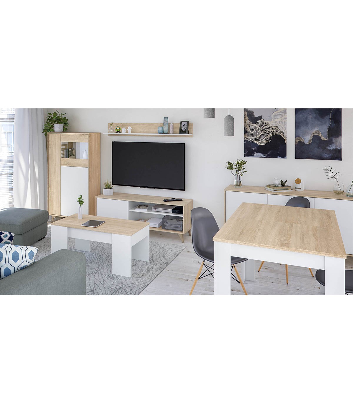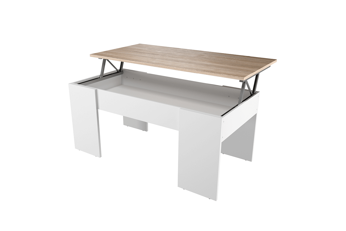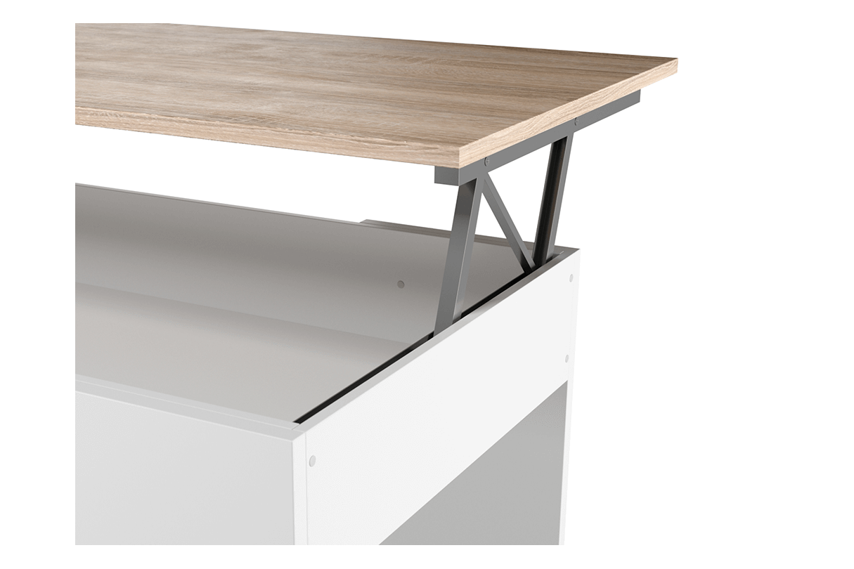 | Libellé | Table basse GOTHAM avec plateau relevable et rangement - Blanc et Bois |