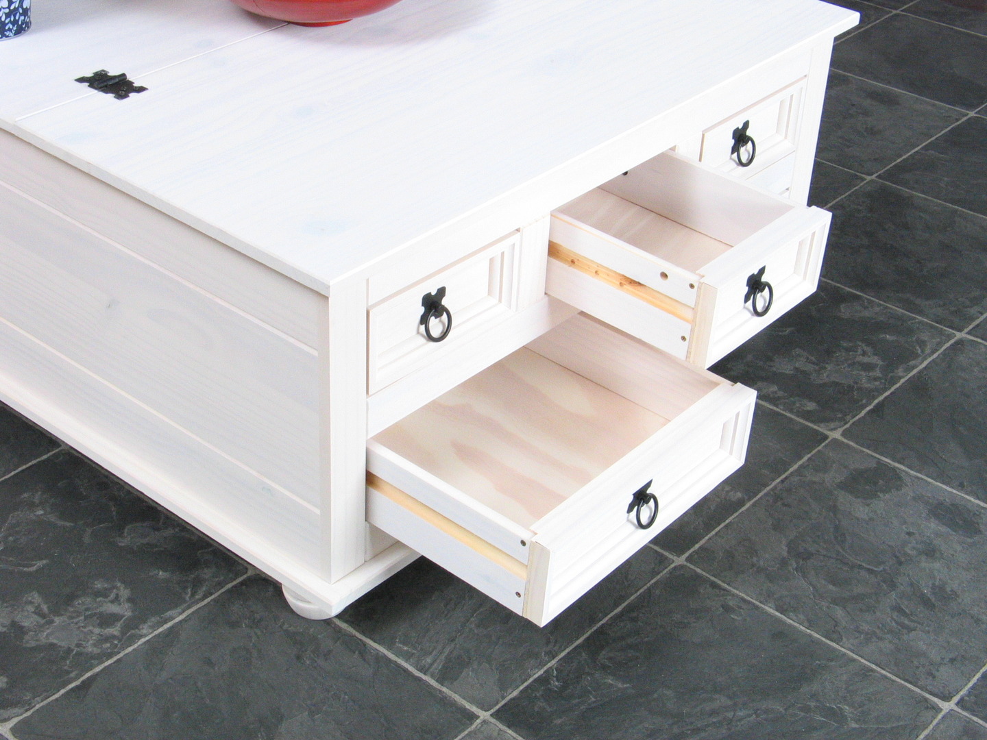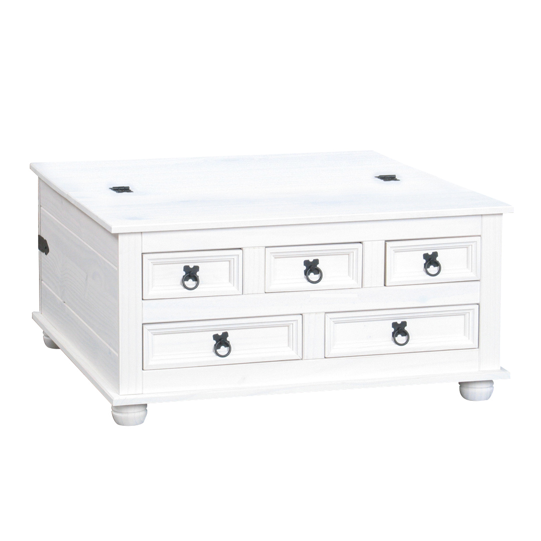 La table basse New Mexico avec 5 tiroirs 91x91 blanc/cire est une table basse de couleur nan, qui apporte à la fois style et fonctionnalité à votre intérieur. Belle table basse à 5 tiroirs de style antique de notre série de meubles "Nouveau Mexique". Une moitié de la table a une porte qui peut être ouverte et vous disposez d'un espace de rangement sous le plateau de la table. Dans une moitié de la table, vous disposez de 5 tiroirs avec espace de rangement. La table basse est en pin massif ciré en blanc. La structure du bois est visible à travers la couleur blanche. Ce produit est créé avec un souci du détail, ce qui garantit à la fois un attrait esthétique et une grande durabilité. Il est conçu dans un souci à la fois de fonctionnalité et de style, ce qui en fait le choix parfait pour n’importe quelle pièce de votre maison. Les matériaux utilisés sont de haute qualité, ce qui confère au produit une longue durée de vie et lui permet de résister à une utilisation quotidienne. Que ce soit pour le rangement ou comme ajout décoratif, ce produit rehaussera votre décor et apportera plus de confort et d'élégance à votre maison.