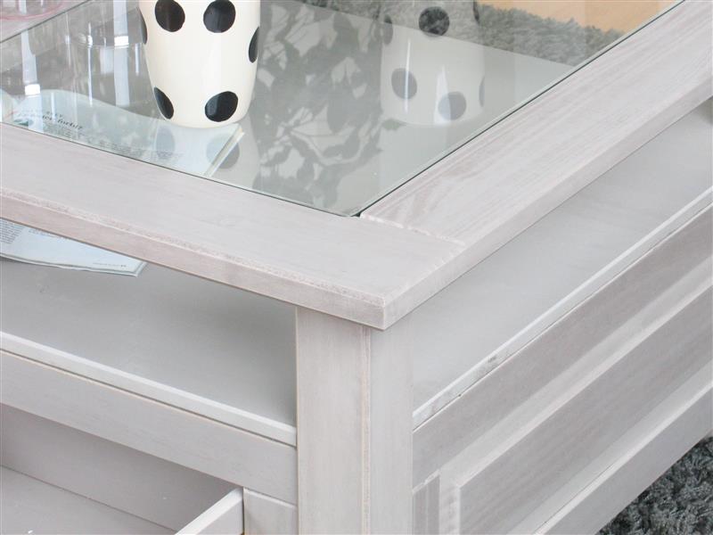 La table basse New Mexico avec 2 tiroirs en gris est une table basse de couleur nan, qui apporte à la fois style et fonctionnalité à votre intérieur. Jolie table basse rustique en wax gris réalisée dans un style ancien. La table basse est réalisée en pin massif traité à la cire en gris, où la structure du bois est visible à travers la couleur grise. La hauteur sous le plateau près de l'étagère est de 13 cm. Ce produit est créé avec un souci du détail, ce qui garantit à la fois un attrait esthétique et une grande durabilité. Il est conçu dans un souci à la fois de fonctionnalité et de style, ce qui en fait le choix parfait pour n’importe quelle pièce de votre maison. Les matériaux utilisés sont de haute qualité, ce qui confère au produit une longue durée de vie et lui permet de résister à une utilisation quotidienne. Que ce soit pour le rangement ou comme ajout décoratif, ce produit rehaussera votre décor et apportera plus de confort et d'élégance à votre maison.
