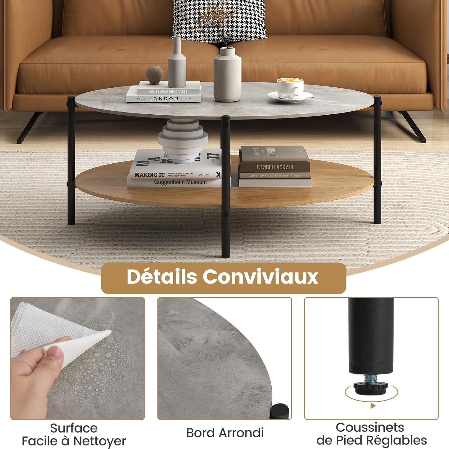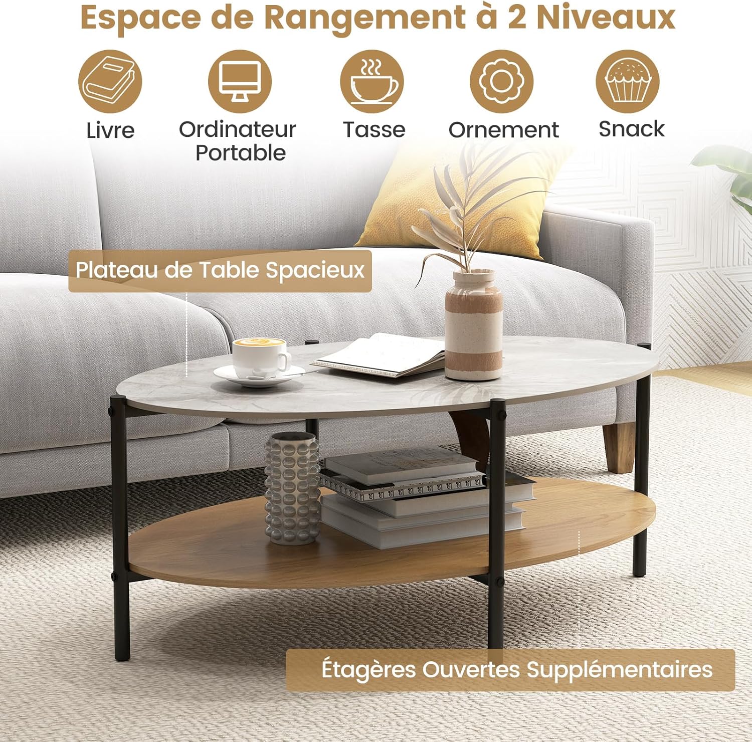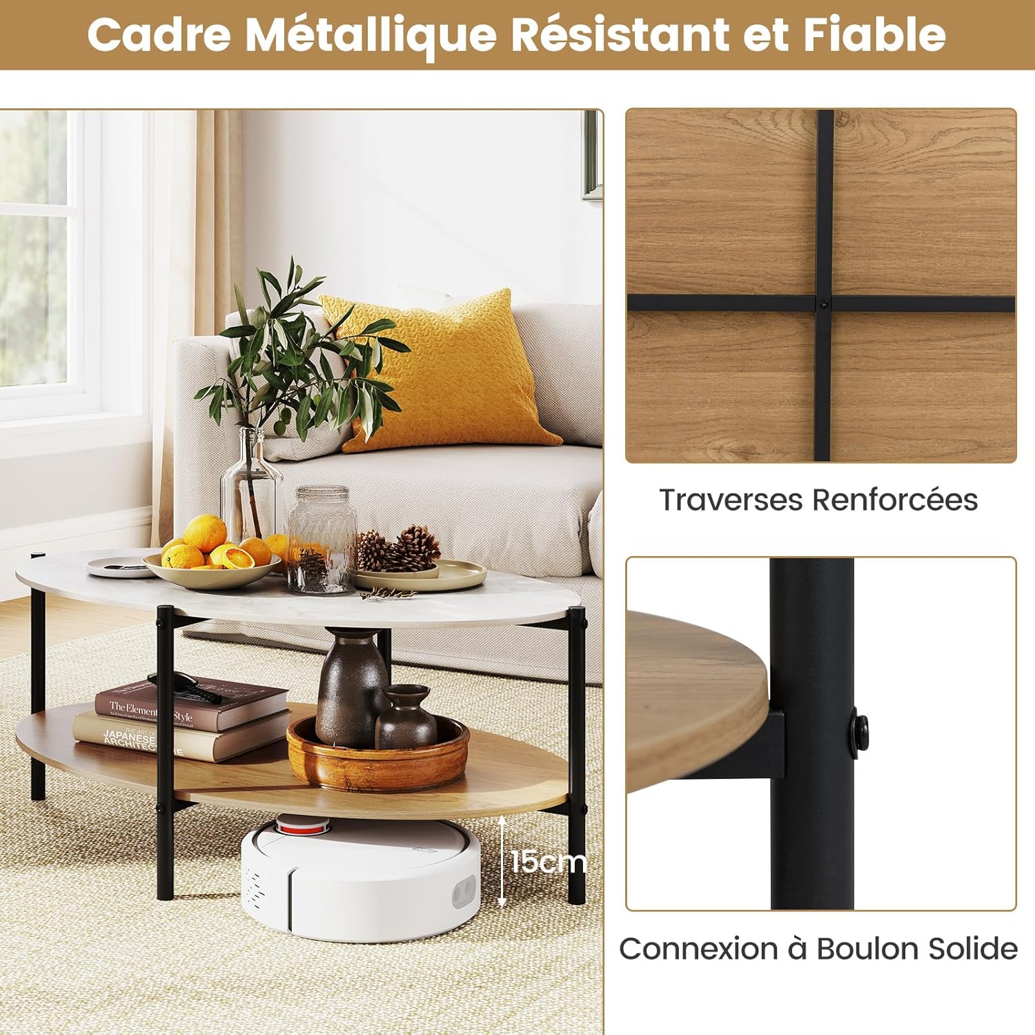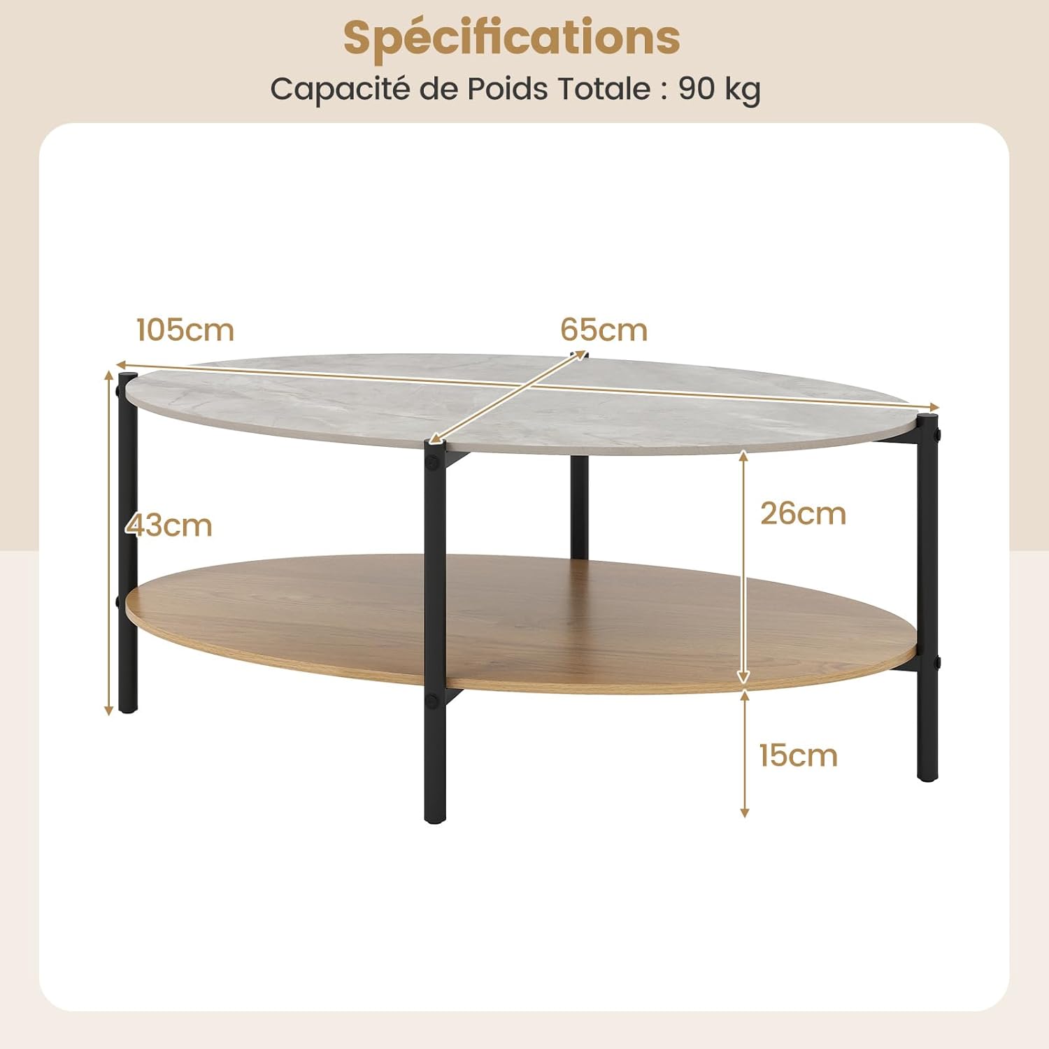 | Libellé | Table Basse Ovale - 2 Niveaux, Cadre en Métal, Design Compact, 105 x 65 x 43 cm |