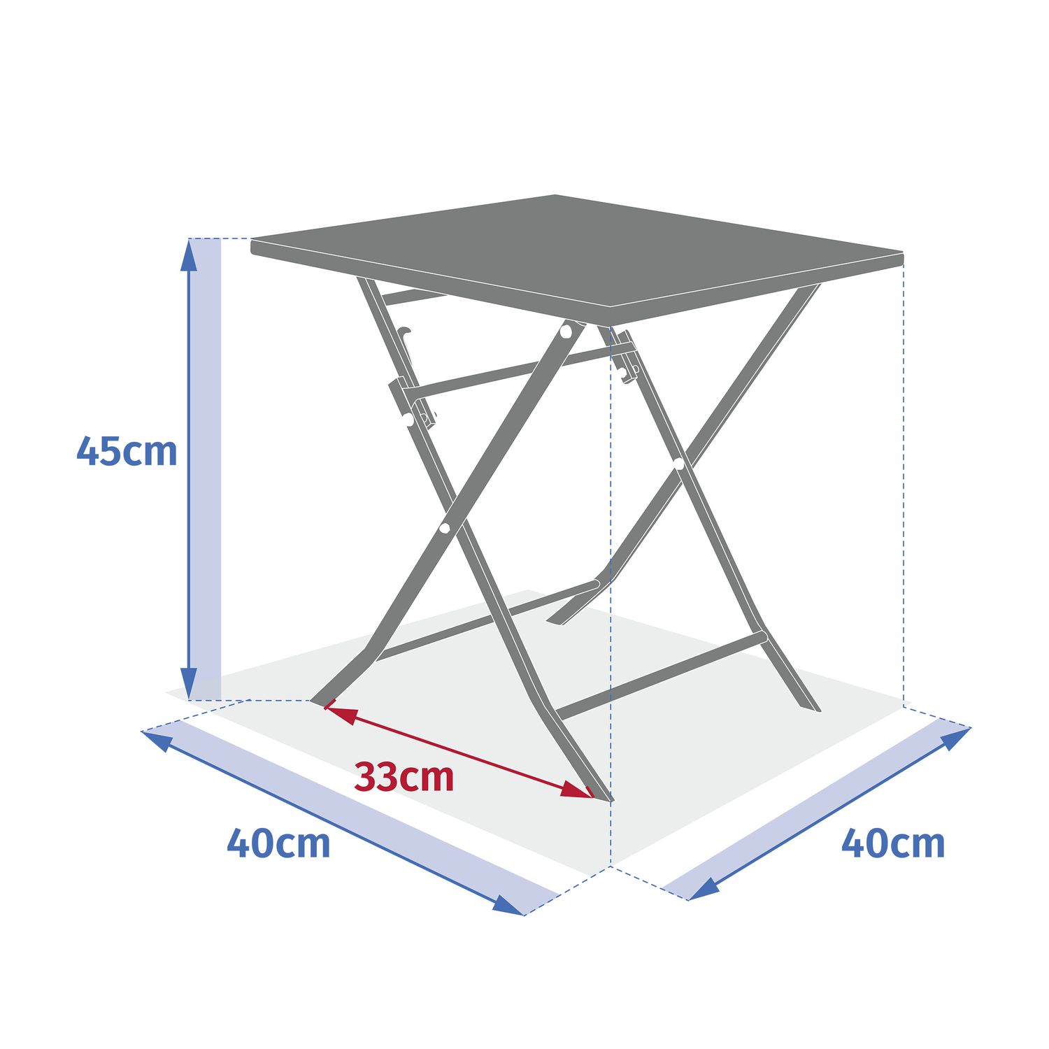 - Dimensions dépliée : Longueur 40 cm x Largeur 40 cm x Hauteur 45 cm