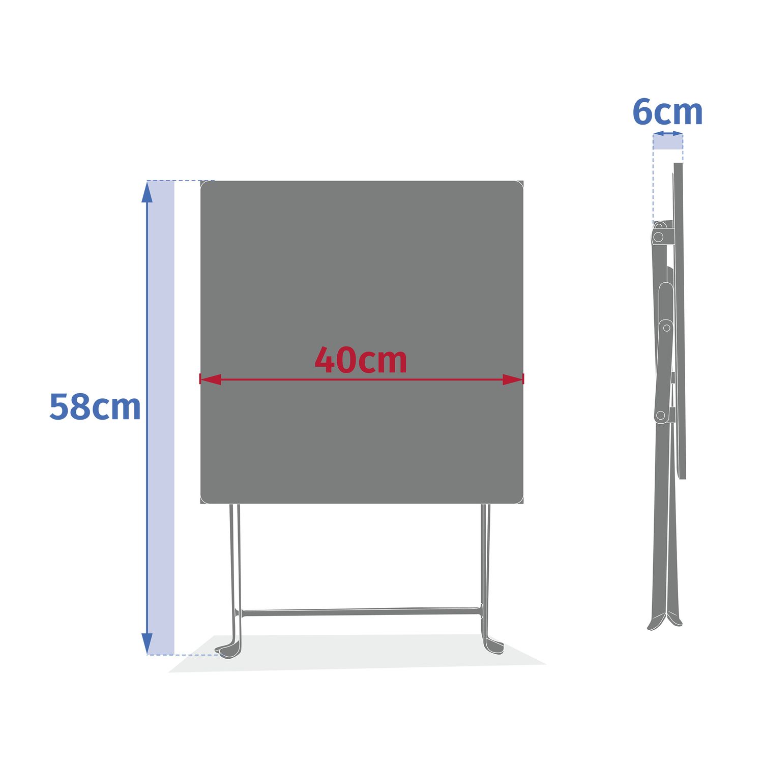 - Dimensions pliée : Longueur 40 cm x Largeur 6 cm x Hauteur 58 cm