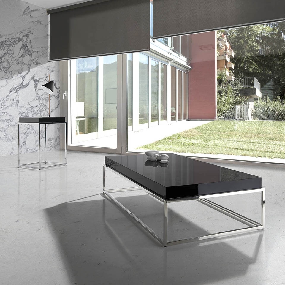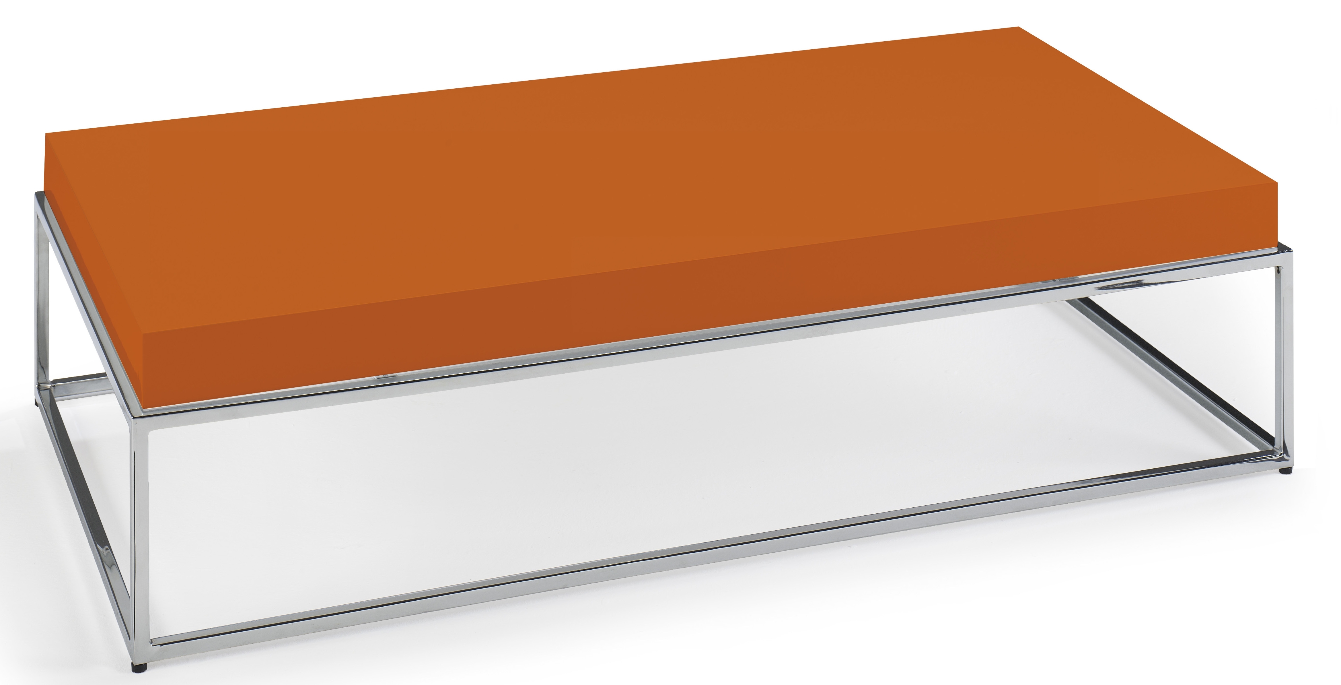 Table basse rectangulaire bois laqué orange et acier inoxydable Gucca