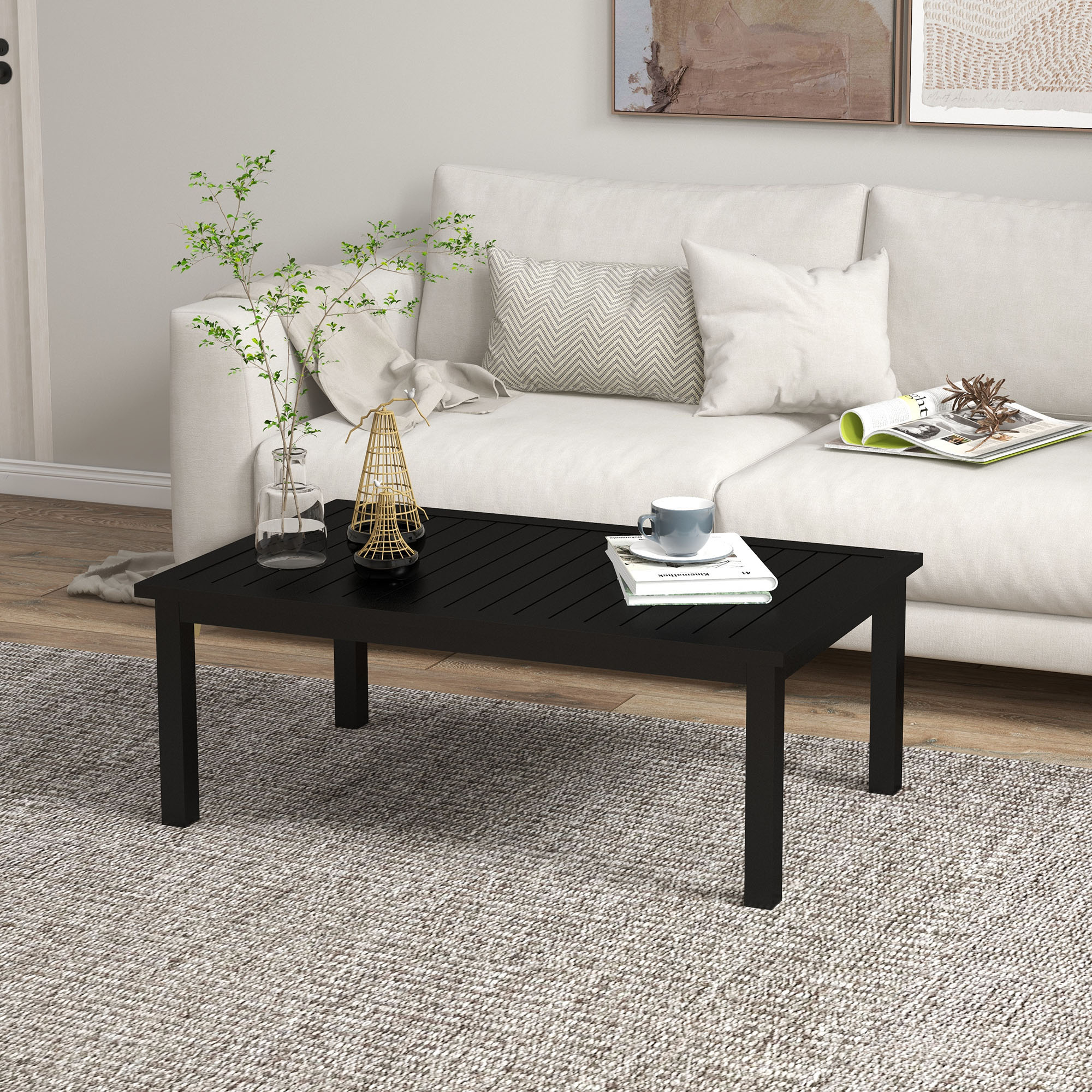 Table basse rectangulaire de jardin plateau lattes 100 x 60 x 37 cm alu noir