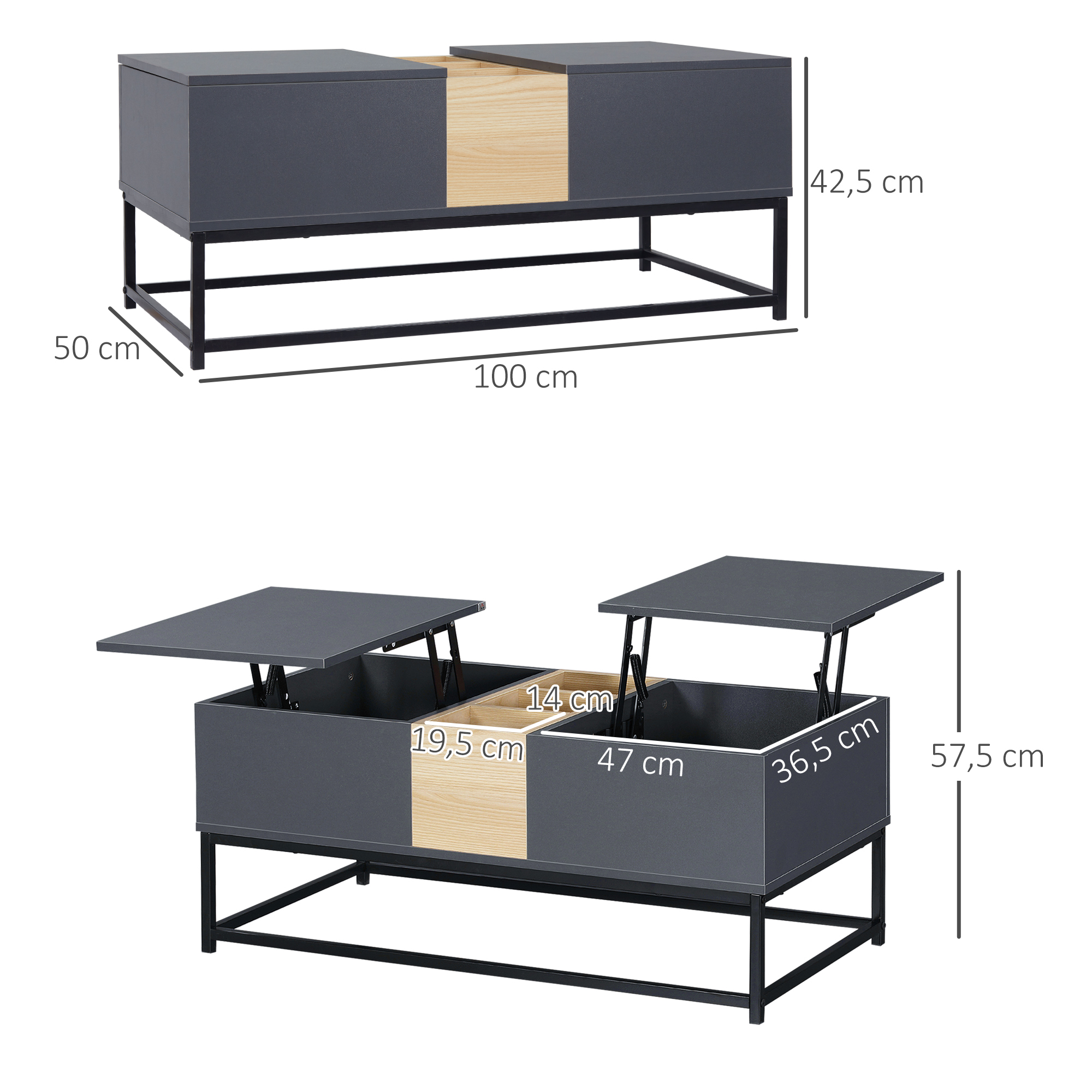 Table basse relevable double plateau multi-rangement - dim. 100L x 50l x 42H cm - acier panneaux coloris