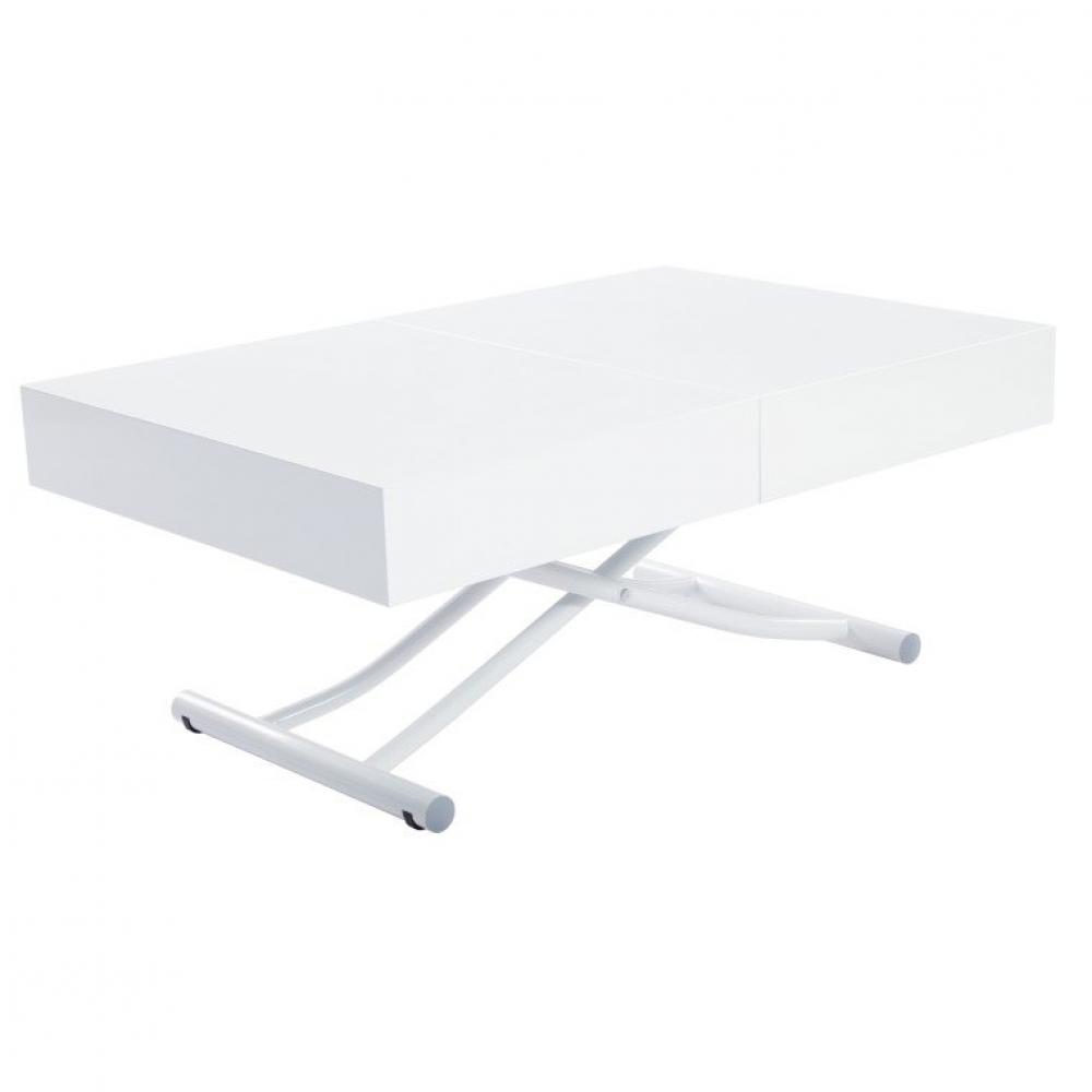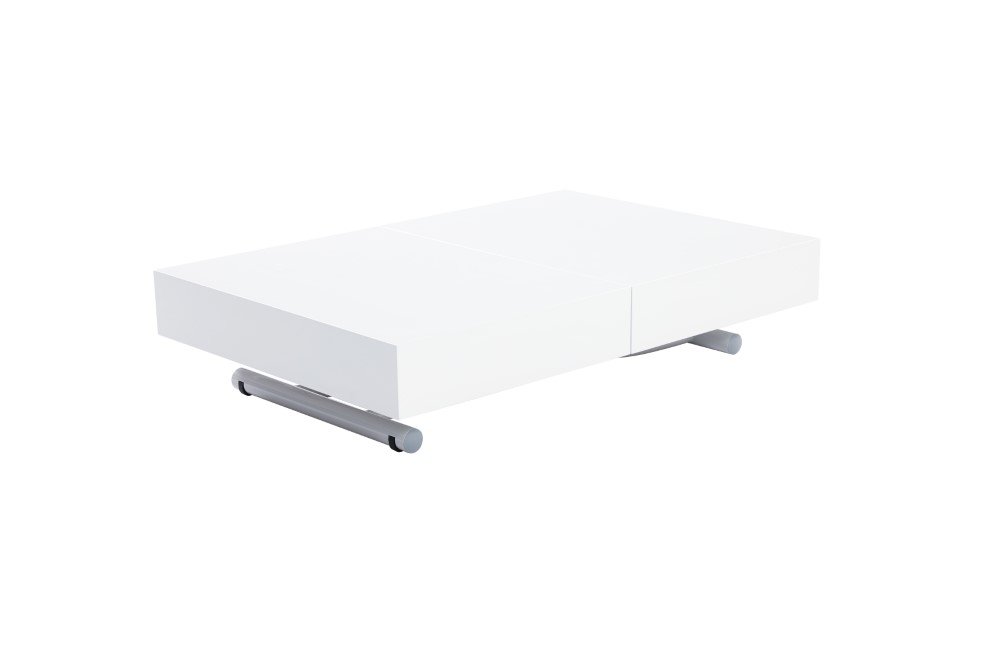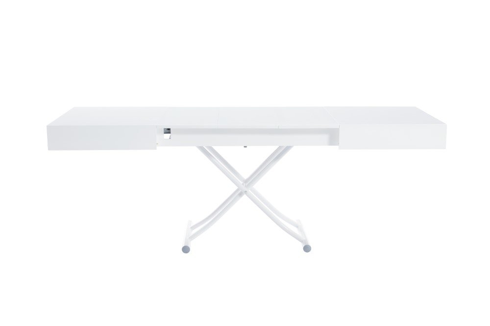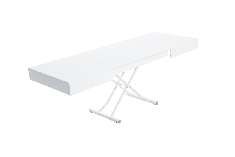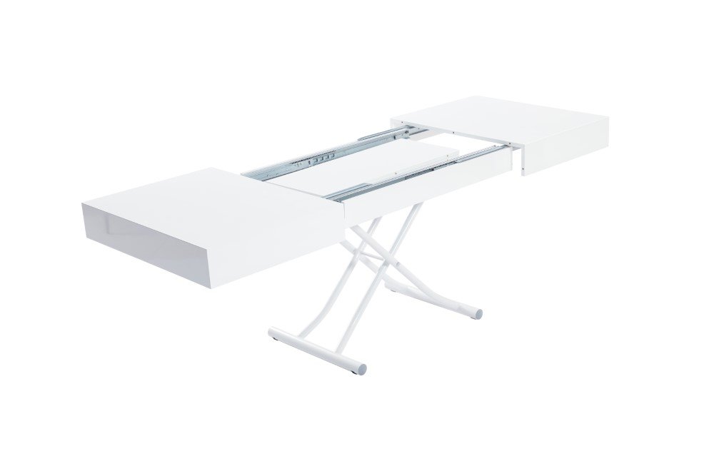 Table basse relevable extensible ALBATROS design blanc brillant