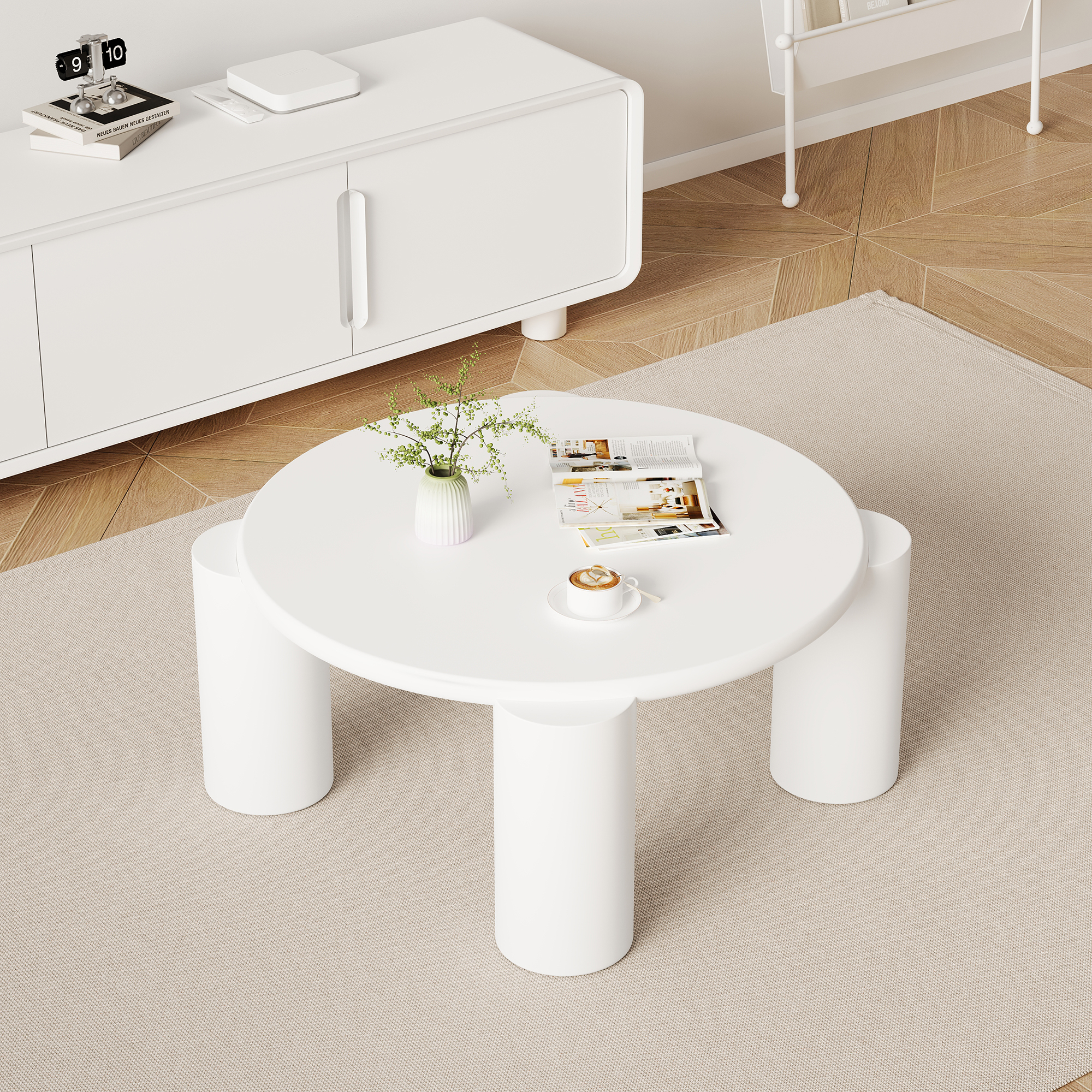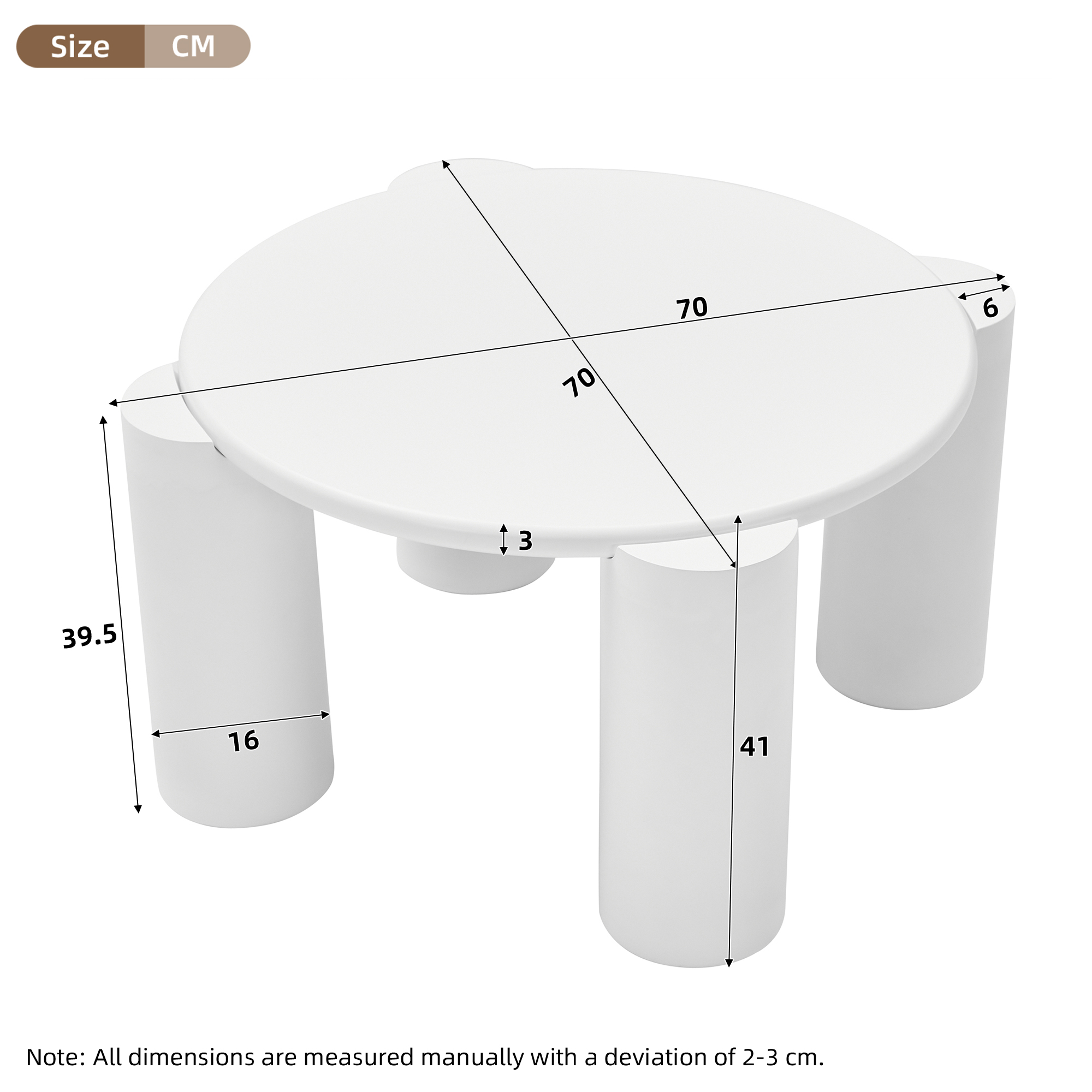 Table basse ronde blanche « Nuage » – Design moderne avec 4 pieds solides, coins arrondis
