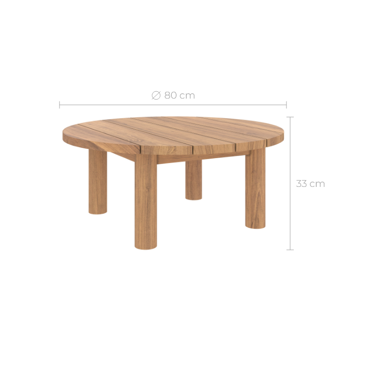 Table basse ronde de jardin en bois de teck massif D80 cm-Aurland