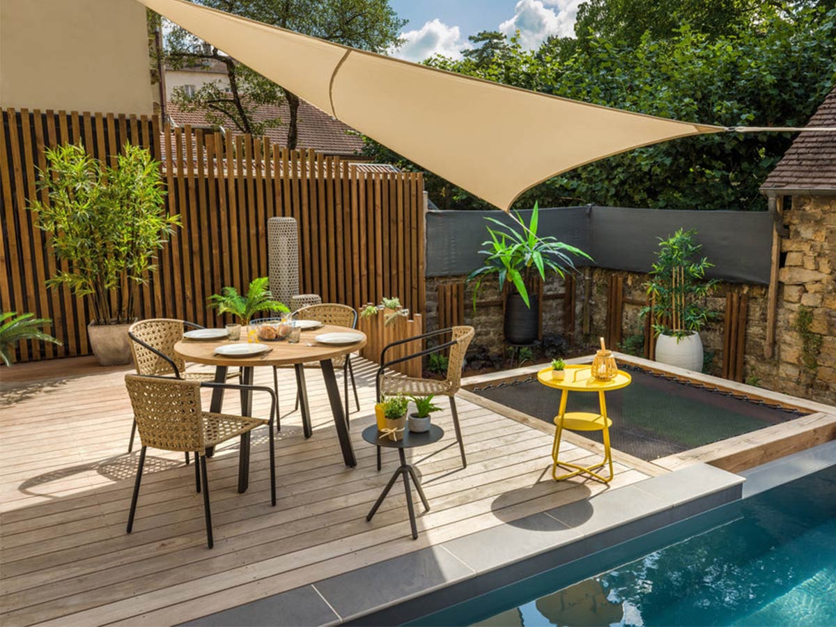 La table basse ronde en alu Thasos jaune de Jardiline Cette table basse ou table d'appoint pour extérieur et intérieur apportera une touche de couleur pour décorer votre terrasse et votre jardin. Parfaite pour accompagner un transat ou un salon de détente extérieur, cette table basse en alu fera un malheur. Tendance et intemporelle à la fois, elle égaie votre déco extérieure avec sa couleur jaune pétillante. Vous pouvez posez aussi bien des tasses que des pots de fleurs, et très pratique également, sa plateforme pourra recevoir des magazines pour la lecture dans le jardin. Dimensions (Ø x H) : 50 x 56 cm Coloris : Jaune Structure : Aluminium Garantie 2 ans. Caractéristiques techniques Couleur:Jaune Dimensions (L x l x H):50 x 50 x 56 cm Forme:Ronde Garantie:2 ans Marque:JARDILINE Matière(s):Aluminium Pliante:Non Poids:3 kg