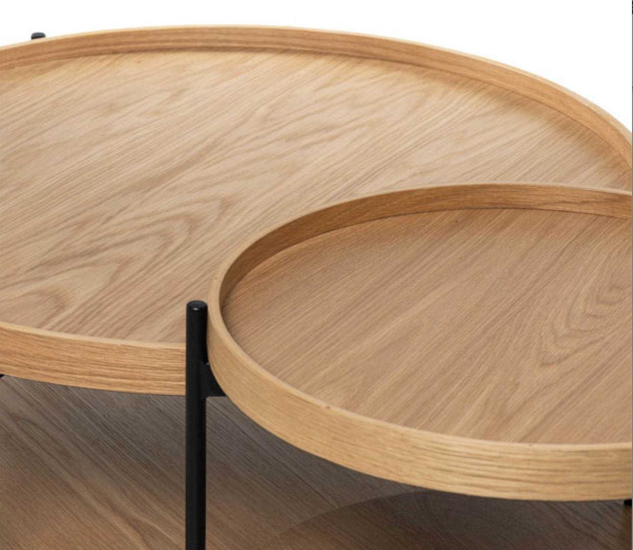 Découvrez l'élégance et la modernité incarnées avec notre table basse ronde, un meuble exceptionnel pour sublimer votre espace de vie. Dotée d'un plateau en MDF de 18 mm, fini en placage de chêne laqué noir ou naturel, cette table fusionne le design raffiné avec la durabilité. Les pieds en métal confèrent à la table une stabilité exceptionnelle tout en ajoutant une touche contemporaine à votre décoration. Disponible en deux diamètres, 50 cm et 80 cm, cette table basse offre une flexibilité pour s'adapter à vos besoins et à la configuration de votre espace. Choisissez entre le fini laqué noir pour une esthétique audacieuse et moderne, ou le placage de chêne naturel pour une touche chaleureuse et intemporelle. Vous avez la liberté de personnaliser votre espace en sélectionnant indépendamment les deux tailles disponibles, permettant ainsi de créer une composition unique et polyvalente. Que vous optiez pour une seule table basse ou que vous choisissiez d'associer les deux pour un effet visuel captivant, notre table basse ronde ajoutera une sophistication incomparable à votre salon. Redéfinissez votre espace de vie avec style et fonctionnalité. Caractéristiques de la table basse (80 cm) : Diamètre : 80 cm Hauteur : 40 cm Couleurs disponibles : Naturel ou noir Matériaux : Base en métal assortie, plateau en placage chêne Design : Plateau en forme de plateau En plus de la version de 80 cm, vous trouverez également une version de 50 cm de diamètre avec une hauteur de 45 cm, offrant une variété d'options pour répondre à vos besoins d'aménagement. Caractéristiques de la table basse (50 cm) : Diamètre : 50 cm Hauteur : 45 cm Couleurs disponibles : Naturel ou noir Matériaux : Base en métal assortie, plateau en placage chêne Design : Plateau en forme de plateau Option(s) sélectionnée(s) : - Couleur : Naturel - Diamètre : 80 cm