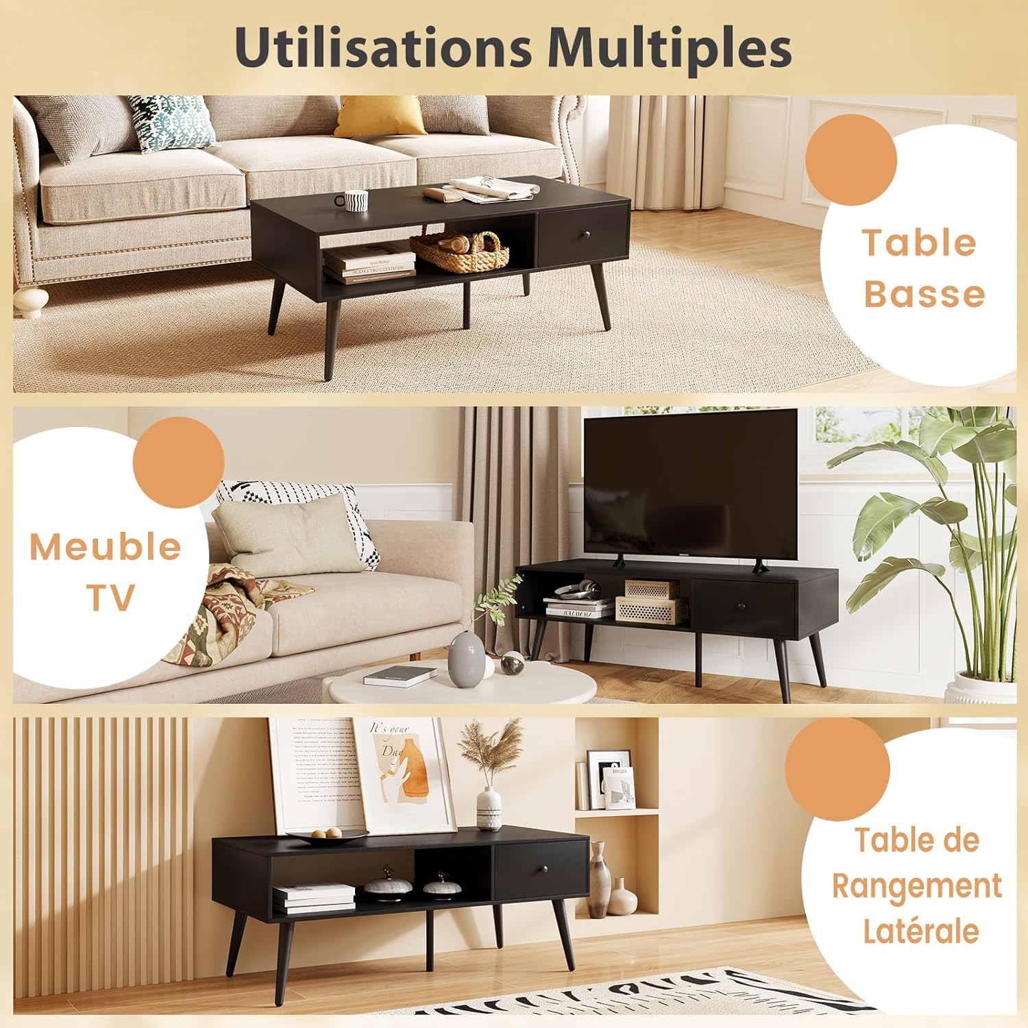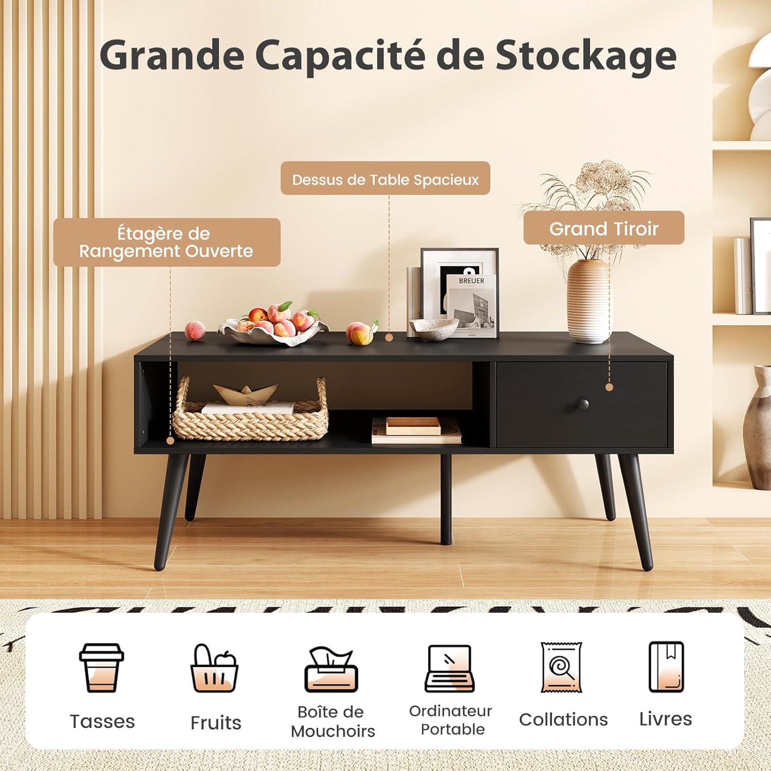 - Rangement Raisonnable: Dotée d'un tiroir avec une poignée métal et une couche de stockage squelette, notre table basse offre grand espace de rangement. Vous pouvez ranger des jeux de cartes, des livres ou la télécommande à l'étagère, son design sans porte permet un meilleur accès aux objets. Le tiroir est parfait pour mettre de quoi faire du thé ou du café.