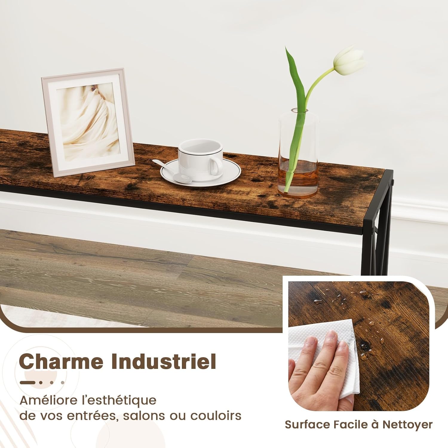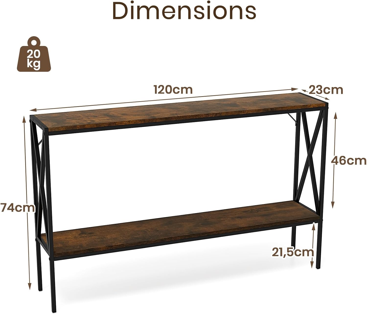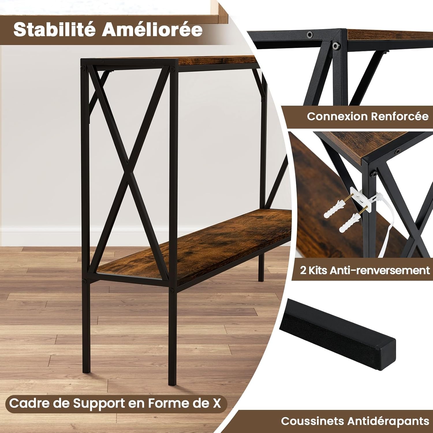 Table console à 2 niveaux,table d'entrée industrielle avec 2 etagères,kits anti-bascule,structure en x