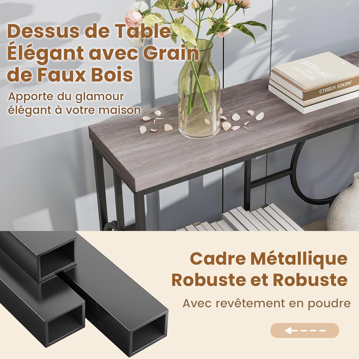 - Construction de Haute Qualité — Cette table console exceptionnelle est conçue avec un cadre en métal robuste garantissant une utilisation durable. Chaque cadre est soumis à un processus minutieux de revêtement en poudre pour une meilleure durabilité. Elle peut supporter jusqu’à 50 kg, parfaite pour contenir divers objets.