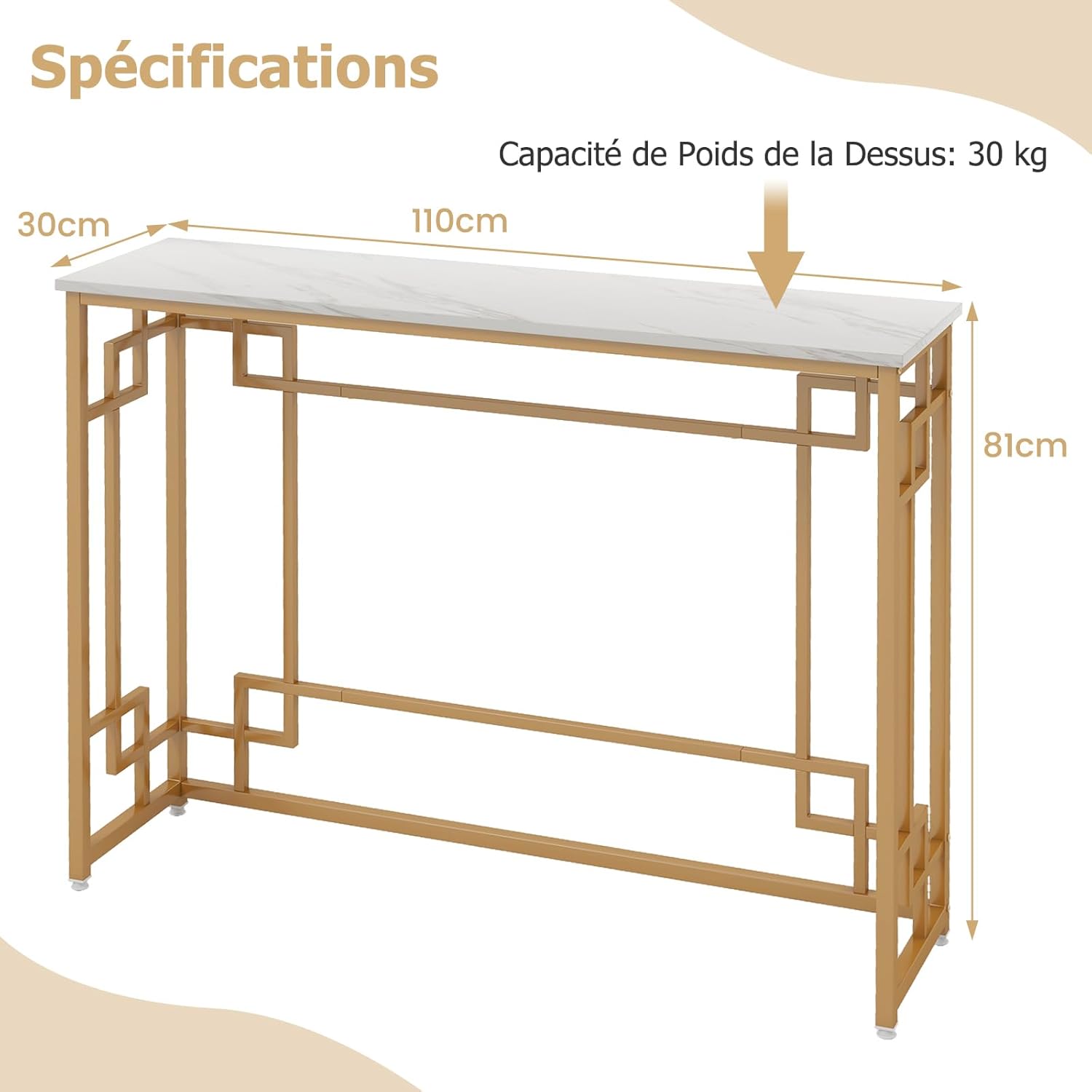 | Libellé | Table console avec plateau en marbre artificiel,table d’entrée avec cadre métallique,pied réglable,blanc |
