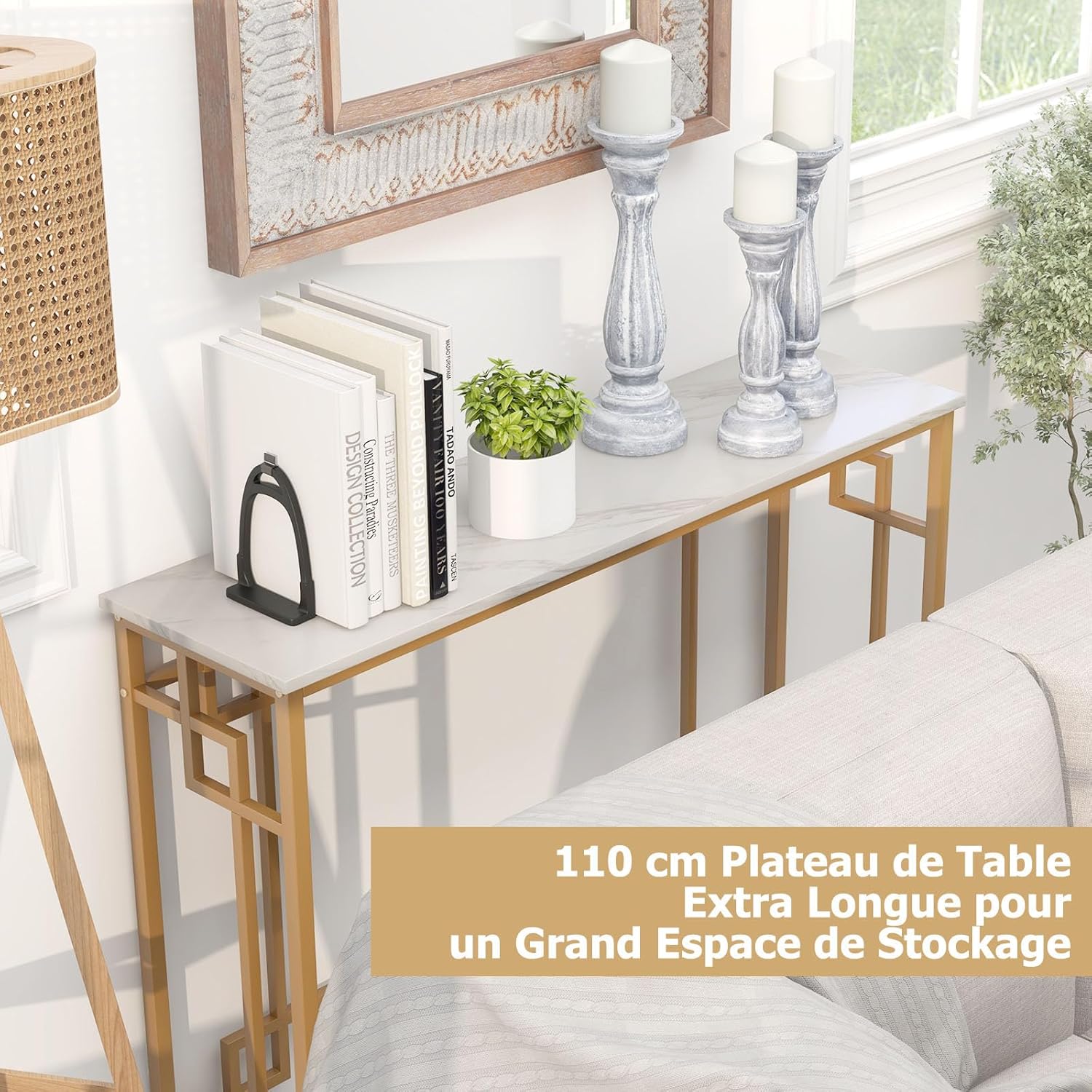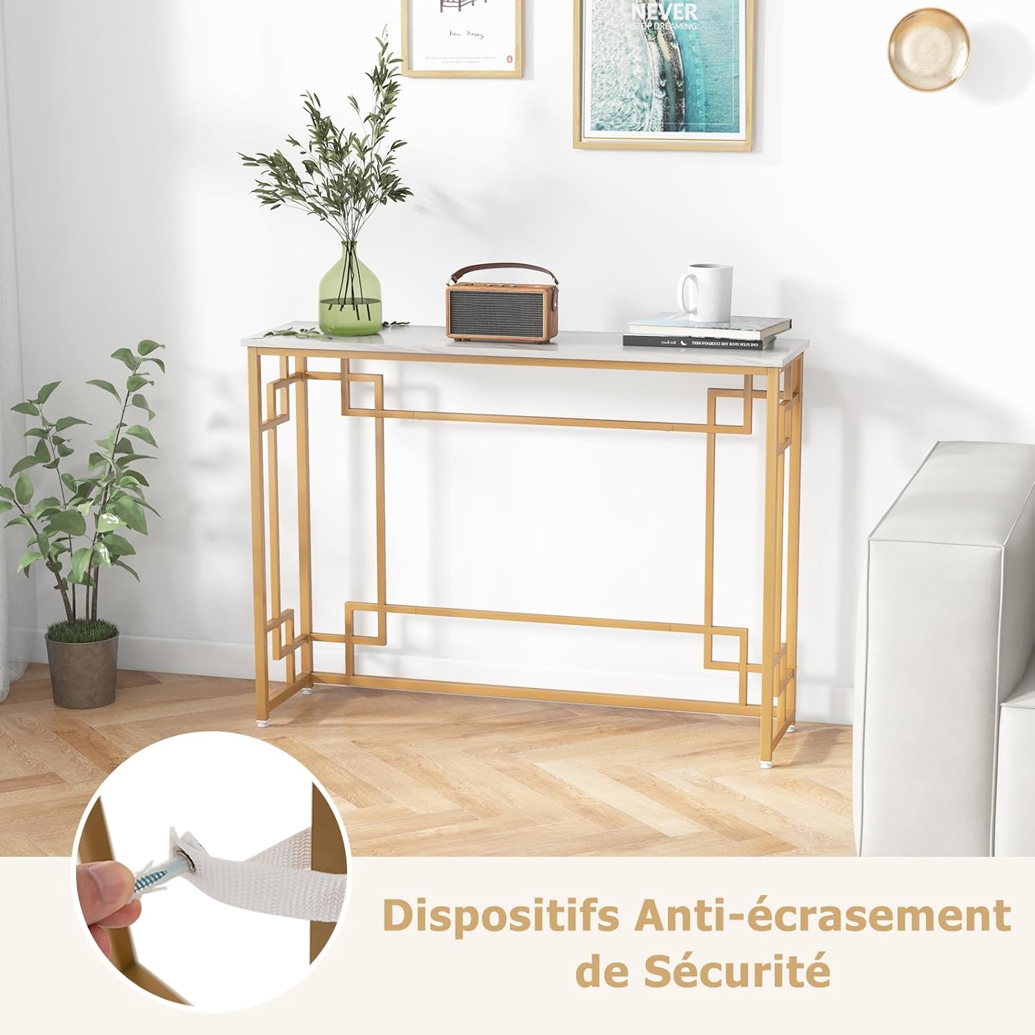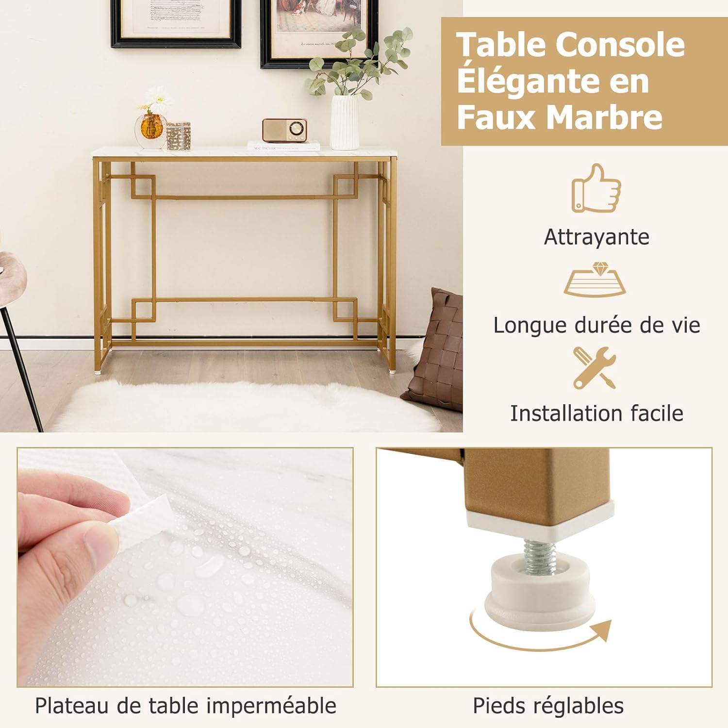L'élégante table console avec plateau en faux marbre ajoute une touche d'élégance à n'importe quel espace