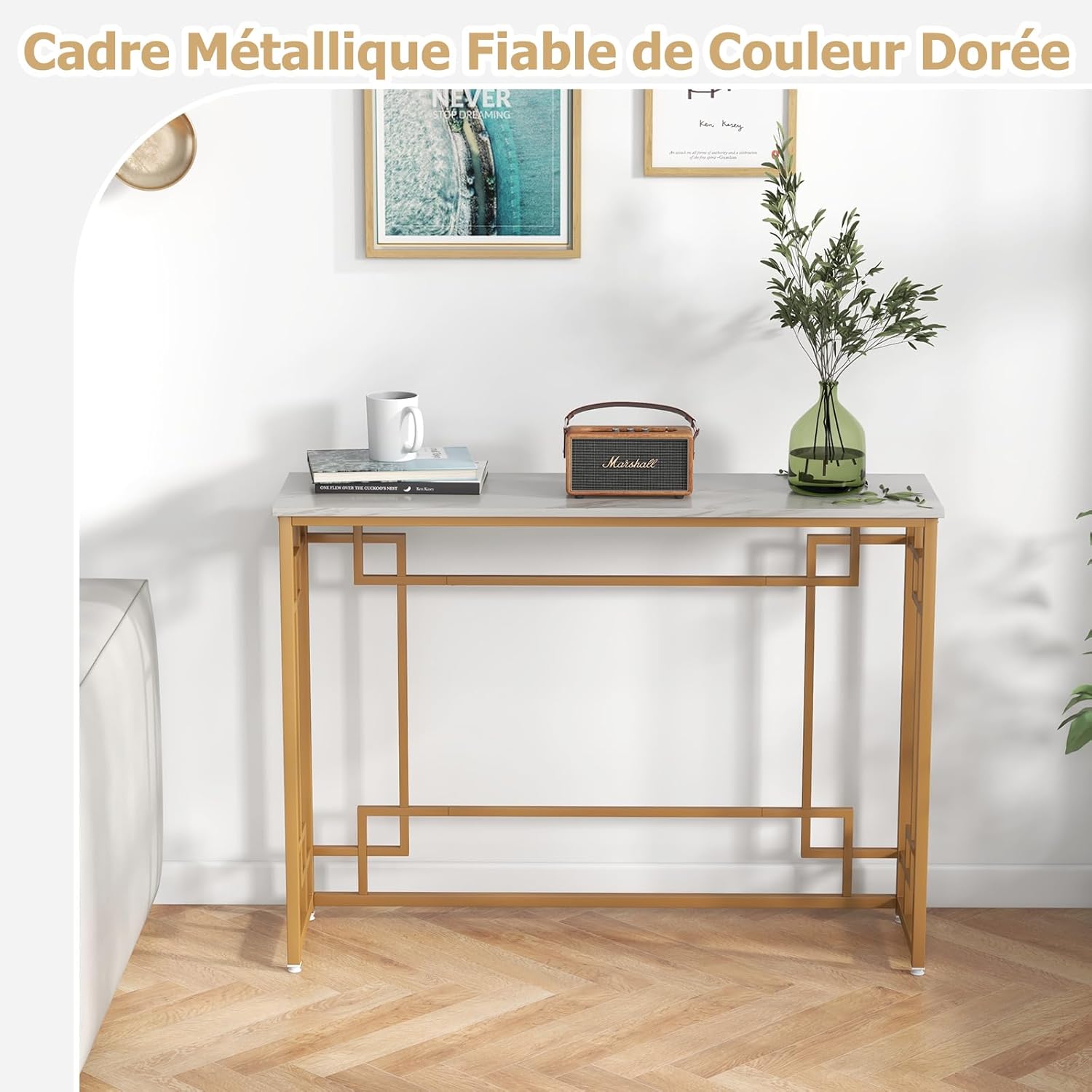 - Table d'entrée moderne et glamour — Cette table console a un design charmant et est suffisamment fonctionnelle pour rehausser le ton de votre espace intérieur. Le plateau de table en faux marbre ajoute une touche d'élégance, tandis que les pieds en métal doré offrent un design unique assez distinctif.