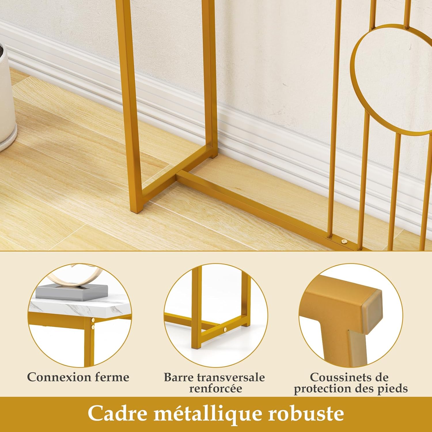 | Libellé | Table console d'entrée, entrée étroite avec plateau en marbre imitation et structure en métal doré |