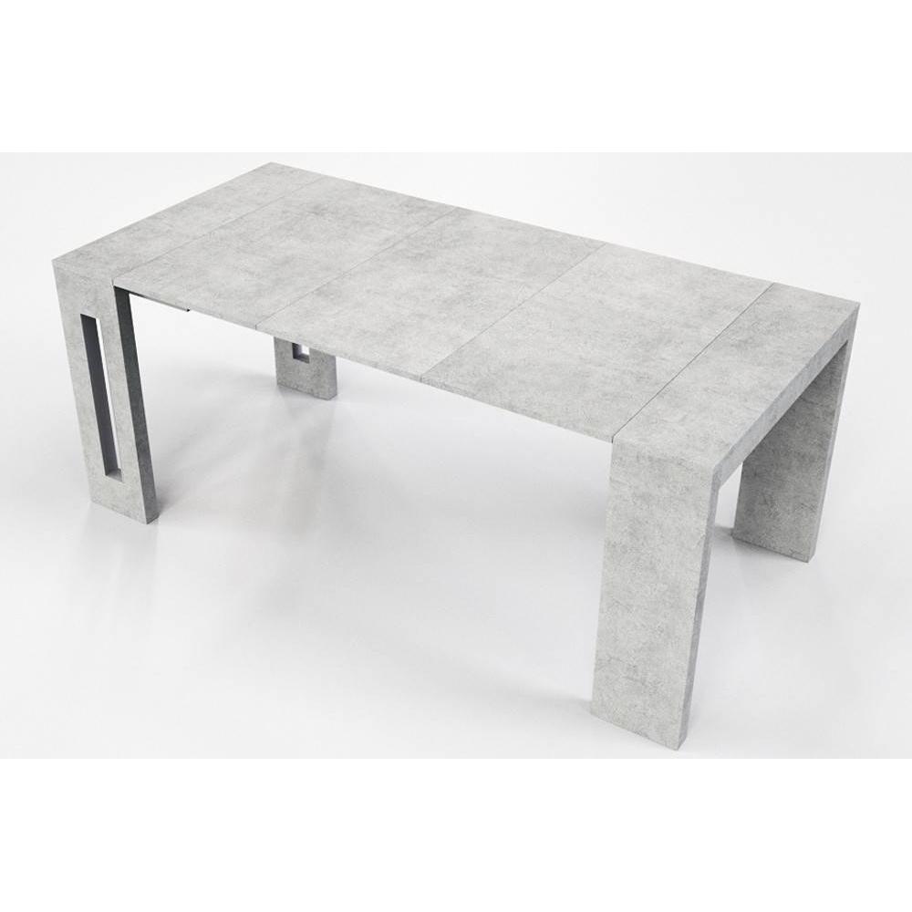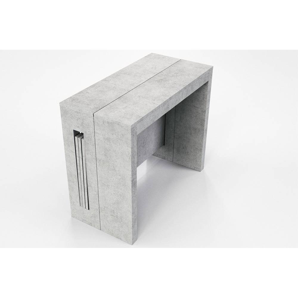 Table console extensible 8 couverts TOPAZ 90 cm béton avec allonges intégrées