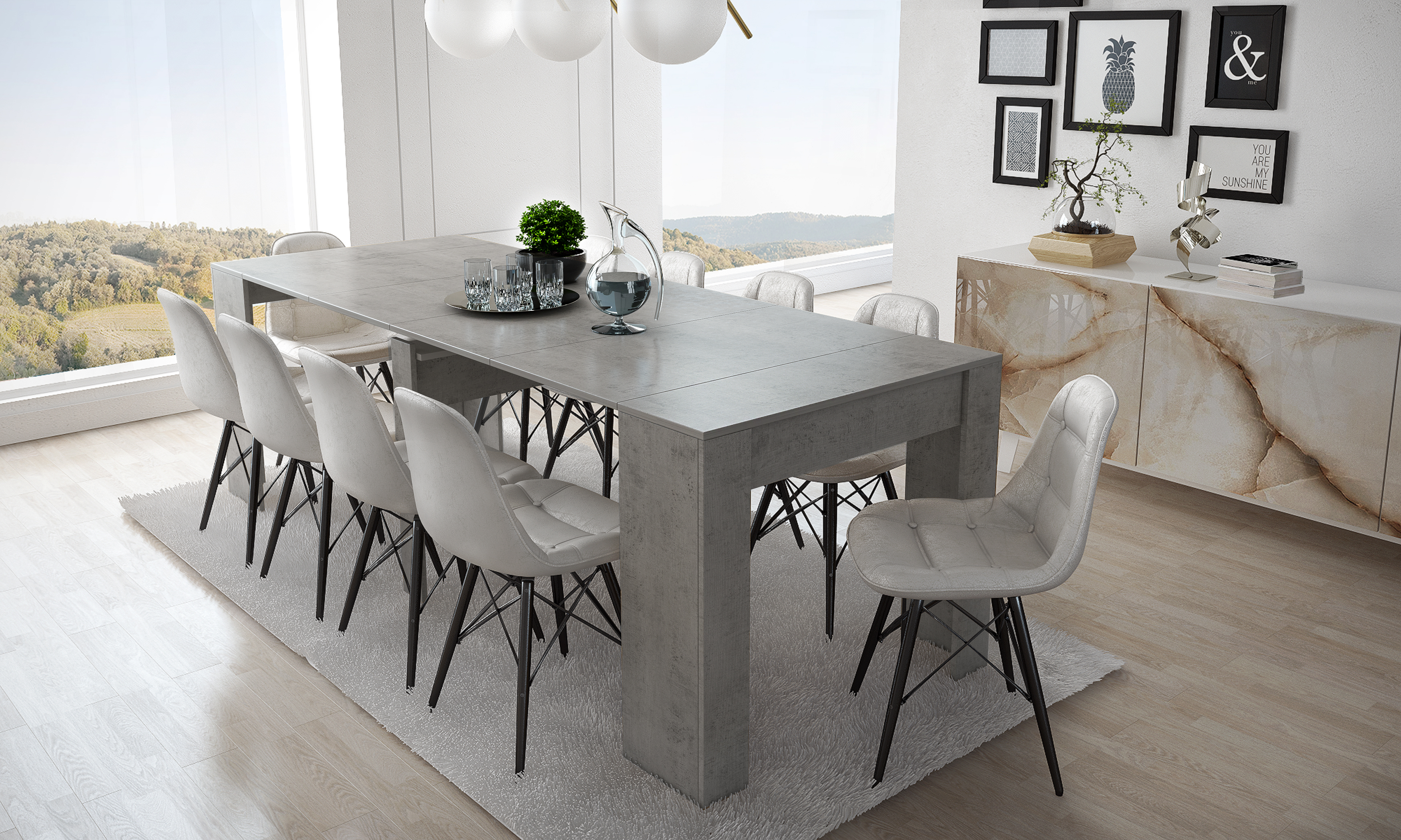 Dimensions fermée : 50 cm (longueur) x 90 cm (largeur) x 78 cm (hauteur). Finition en mélanine couleur CIMENT de haute qualité, réalisée avec des panneaux d'aggloméré de haute résistance. Rails en acier extensibles à haute capacité de charge. Meuble polyvalent et multifonctionnel avec un design simple et élégant qui vous permettra de l'adapter dans n'importe quelle pièce de votre maison. Utilisez la console comme meuble d'entrée ou comme meuble de bureau lorsqu'elle est complètement fermée et ouvrez-la au maximum lorsque vous avez besoin d'une grande table pouvant accueillir 10 personnes. La console extensible est une fantastique table à manger à 5 positions qui vous permettra de passer de 50 cm à 237 cm de long. Grâce à sa capacité d'extension, Elle peut être utilisé de plusieurs façons : par exemple, vous pouvez l'utiliser comme table d'entrée, de cuisine ou de bureau et, lorsque vous avez toute la famille à la maison, l'allonger et l'utiliser comme table à manger. De conception simple et élégante, elle vous permettra d'adapter la table à toutes les pièces de votre maison. Vous pouvez transformer cette table exceptionnelle pour 10 personnes et organiser des déjeuners et des dîners sans craindre de manquer d'espace. Rallonges incluses avec la table/console Meubles en kit facile à monter, livrés avec des instructions de montage pour un assemblage optimal. Dimensions : longueur 90cm à 237cm, hauteur 78cm, largeur 90cm. Poids : 58 Kg. Composition : 2 Colis : Colis 1 : 95x53x11 cm, 27Kg Colis 2 : 98x50x11 31Kg CONTENU DES COLIS Toutes les pièces de quincaillerie, les pièces en bois démontées et les instructions pour un assemblage parfait. Les produits décoratifs montrés sur la photo ne sont pas inclus. Service après-vente 100% de satisfaction, remplacement immédiat et gratuit des pièces perdues ou endommagées. Montage non inclus, Livraison en France, Hors Corse et DOM TOM, au pied de l'immeuble/devant la maison.