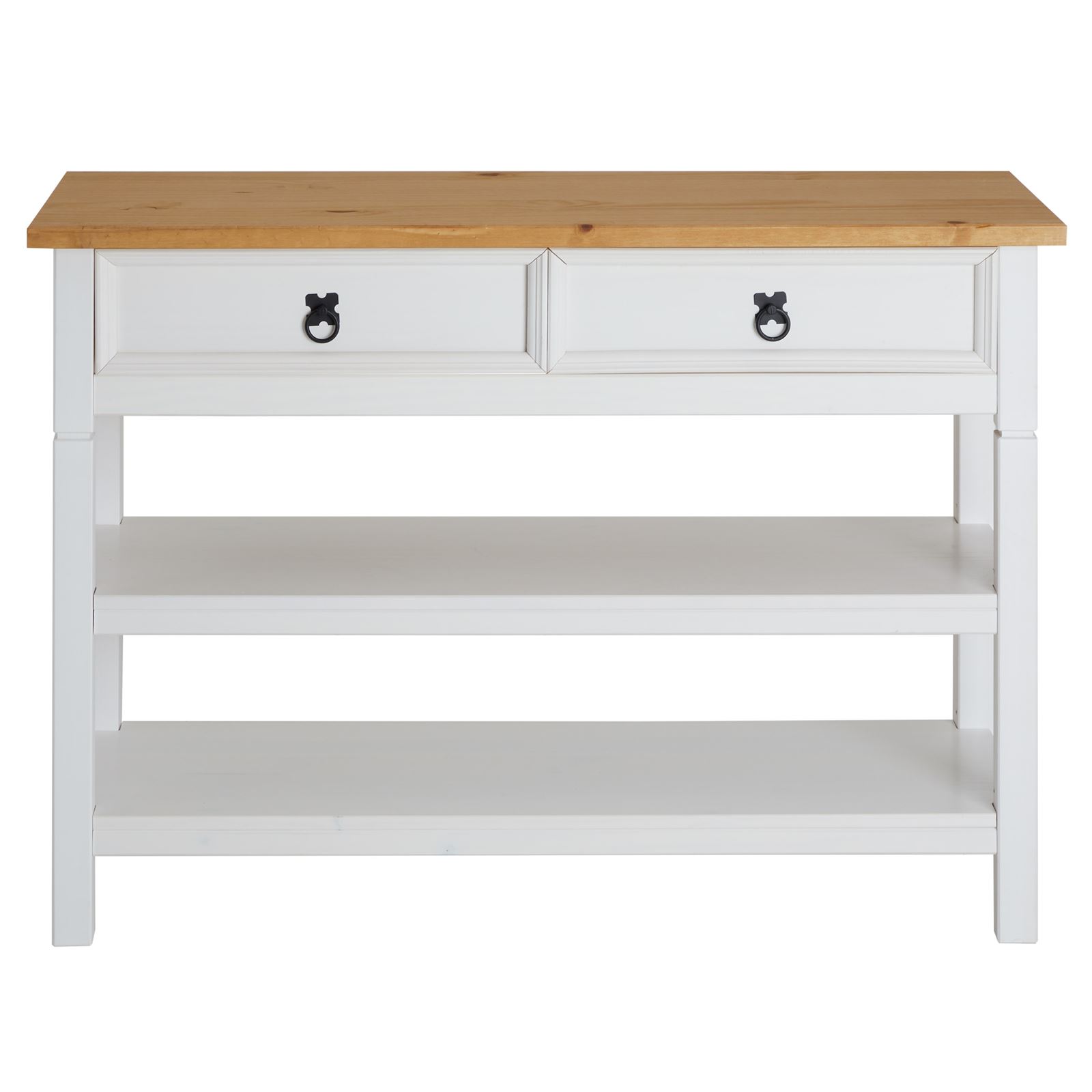 | Libellé | Table console TEQUILA table d'appoint style mexicain avec 1 grand tiroir et 2 étagères, en pin massif lasuré blanc et brun |