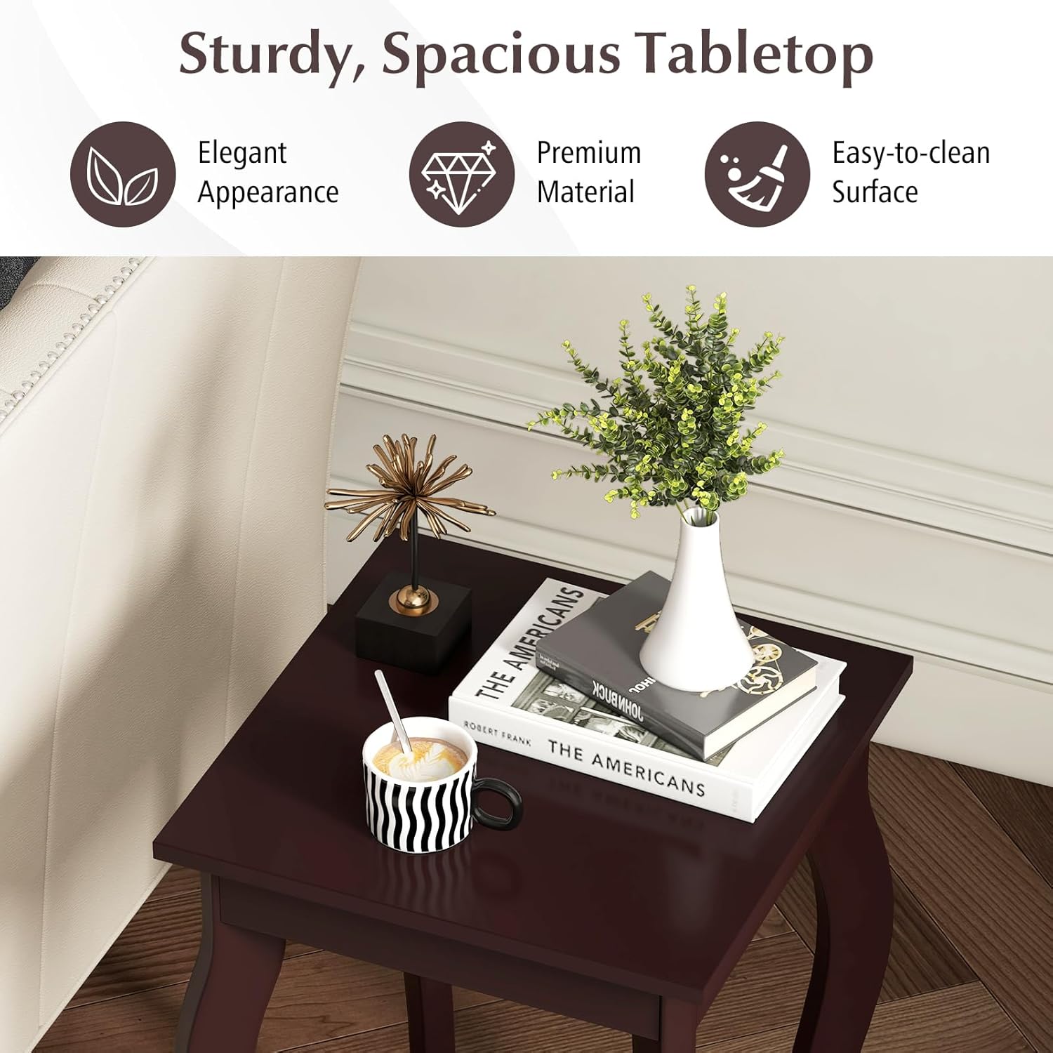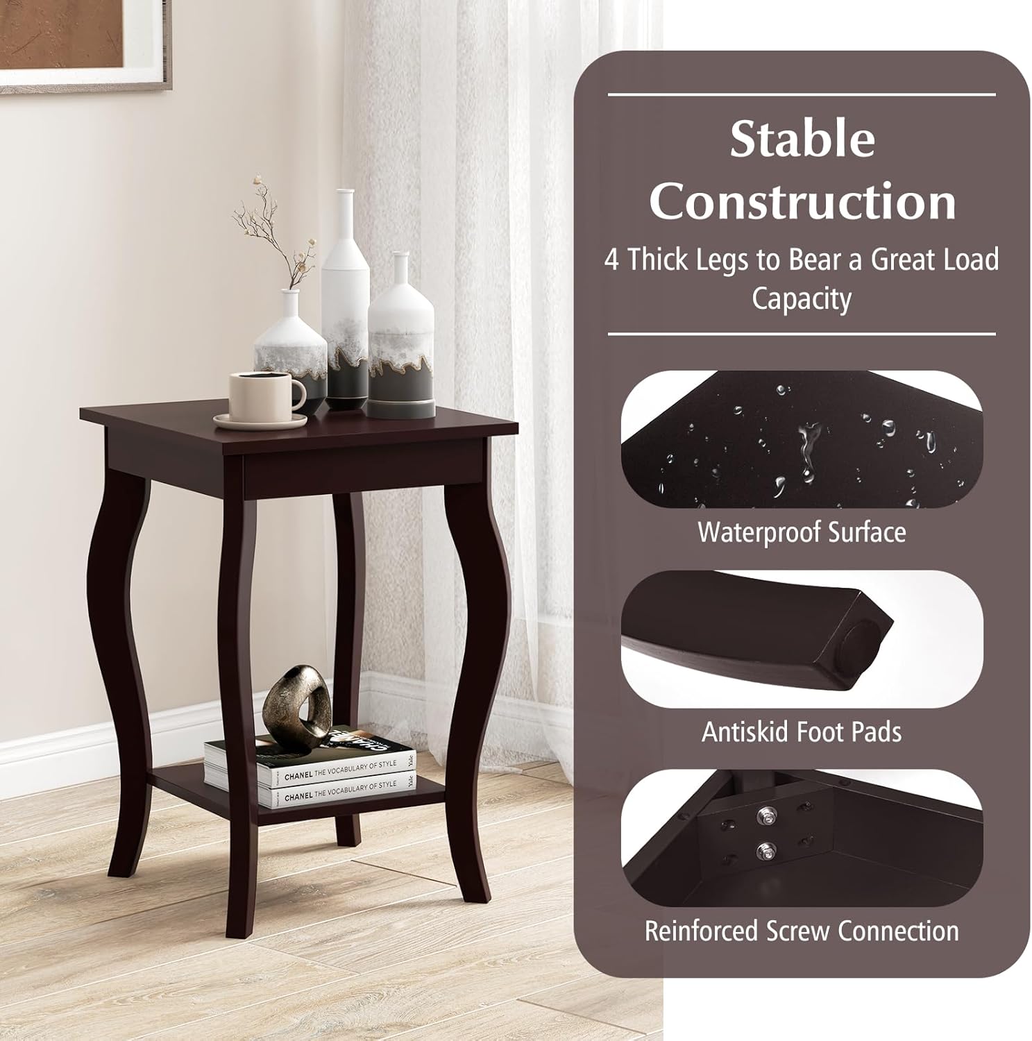 Il s'agit d'une table d'angle carrée au design moderne qui s'adapte à différents styles de décoration et prend peu de place. Largement utilisé, il peut être utilisé comme table basse, table de canapé de salon, table de chevet de chambre à coucher, table de salle de conférence ou même comme support de plantes. La conception à double couche vous permet de placer vos décorations et objets du quotidien. C'est un bon choix pour le choix de meubles de petite taille.