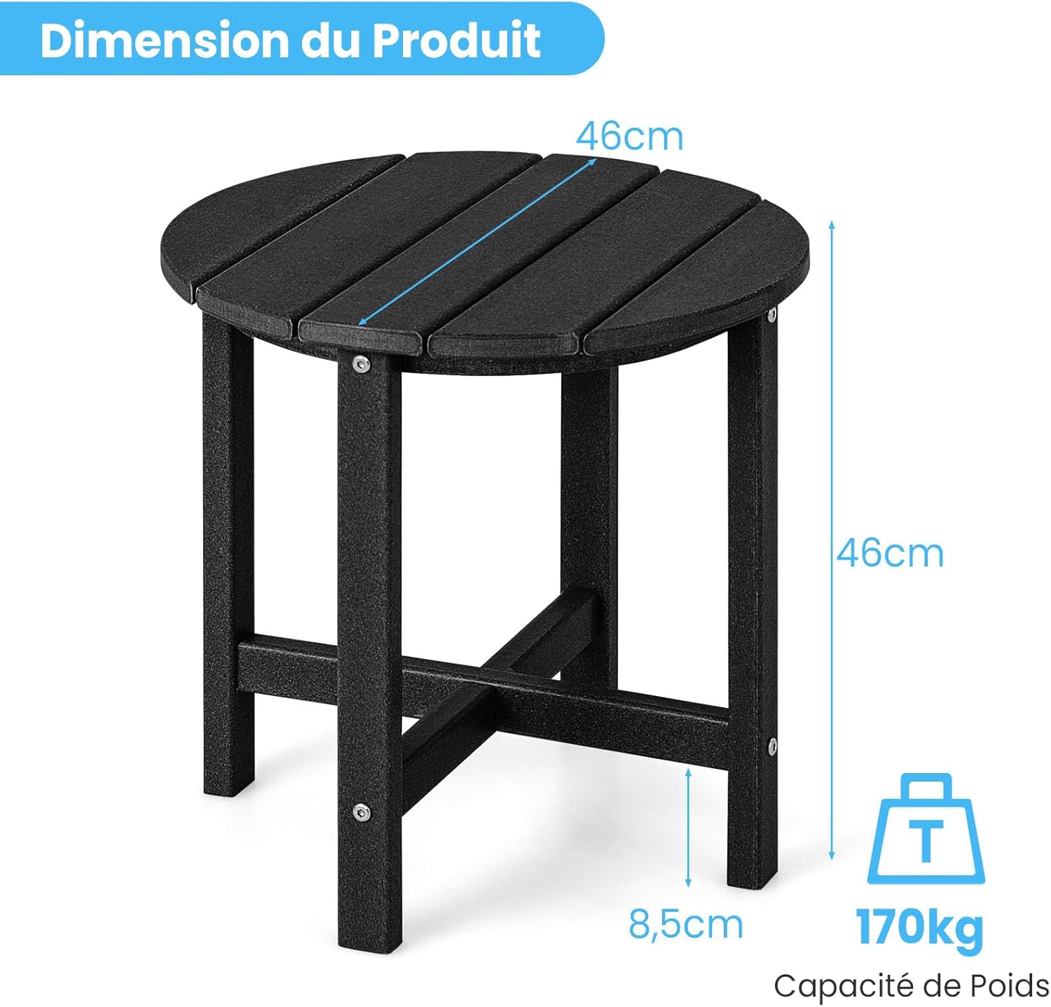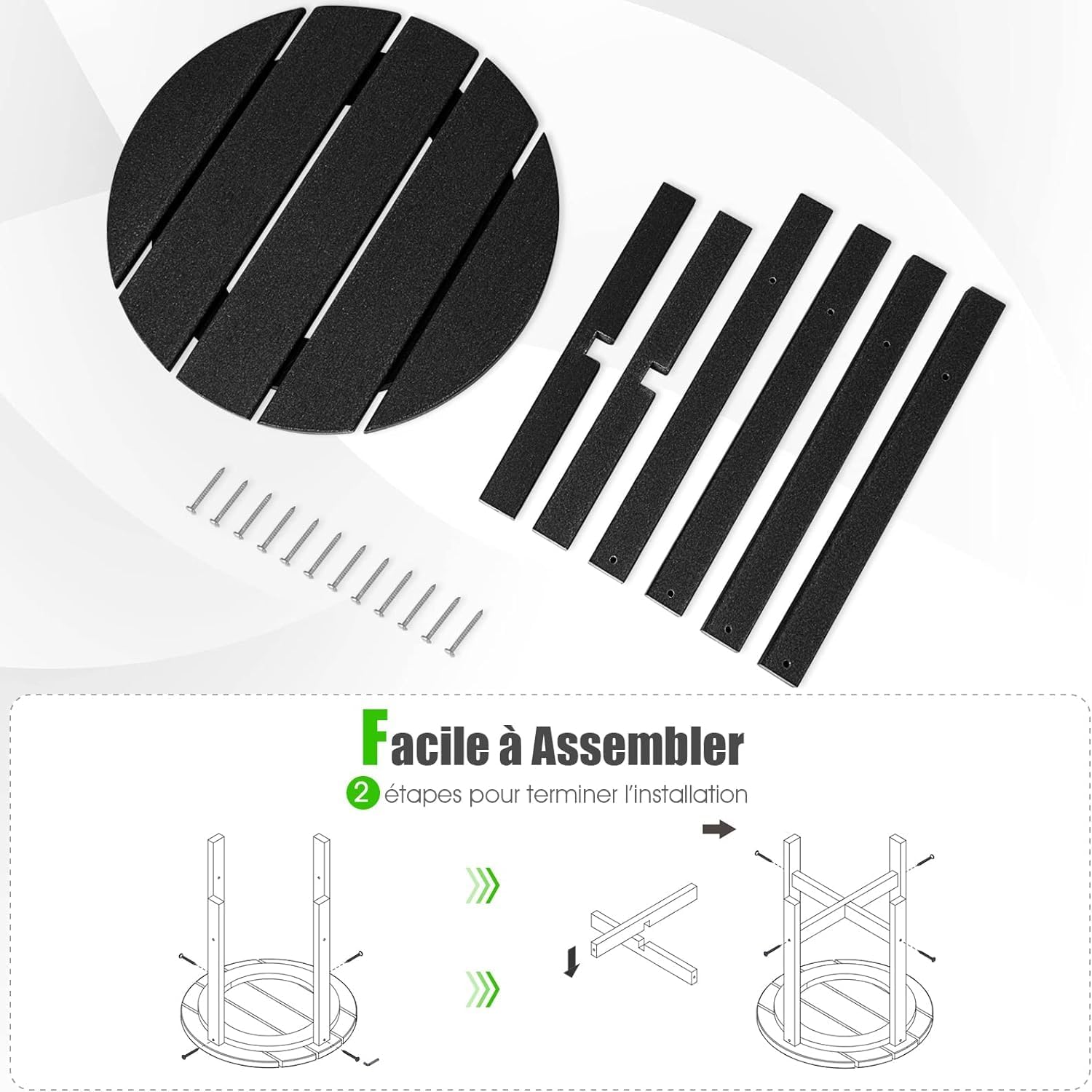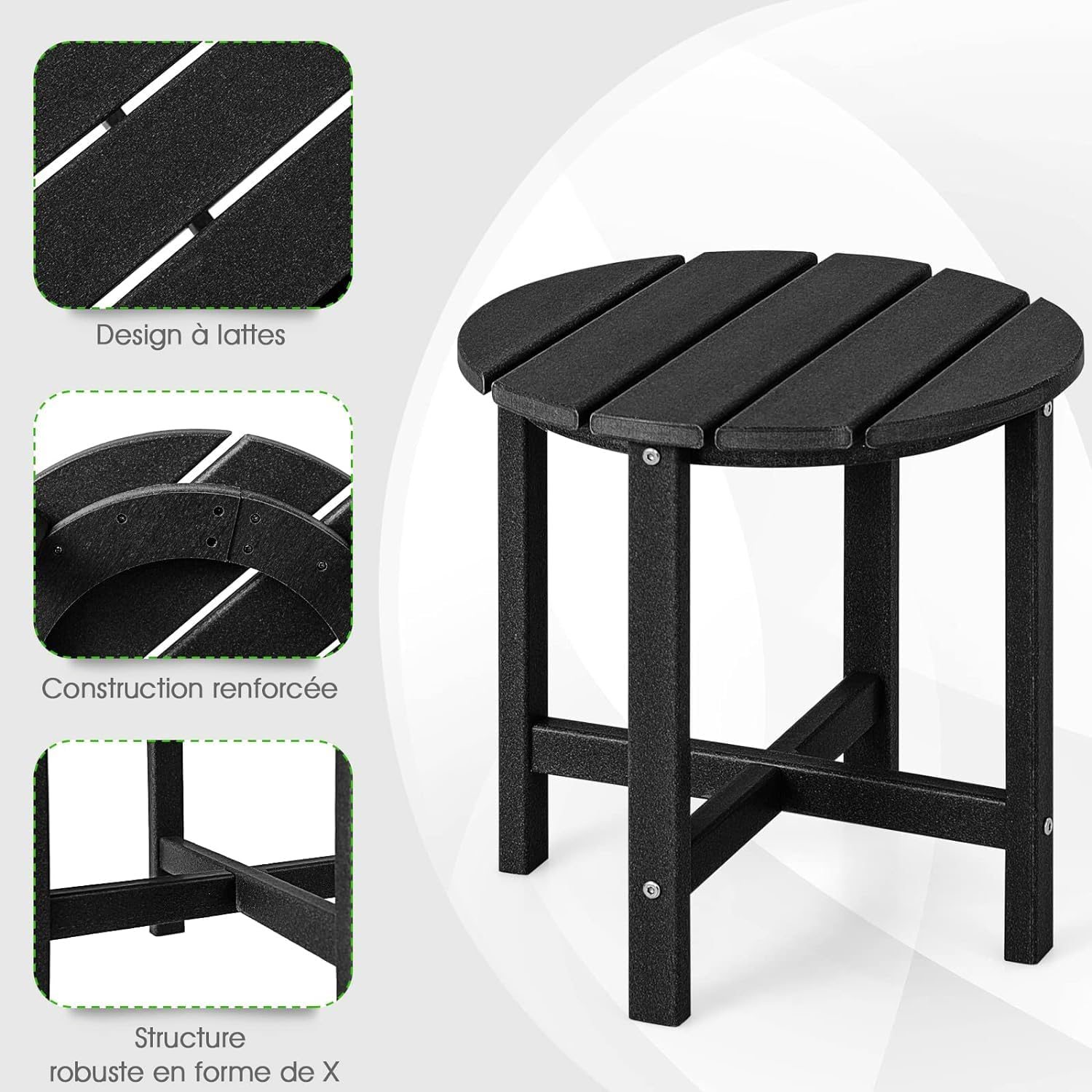 | Libellé | Table d'appoint en hdpe, résistante aux intempéries, table de jardin ronde avec plateau en lattes, structure en forme de x, charge 100kg,noir |