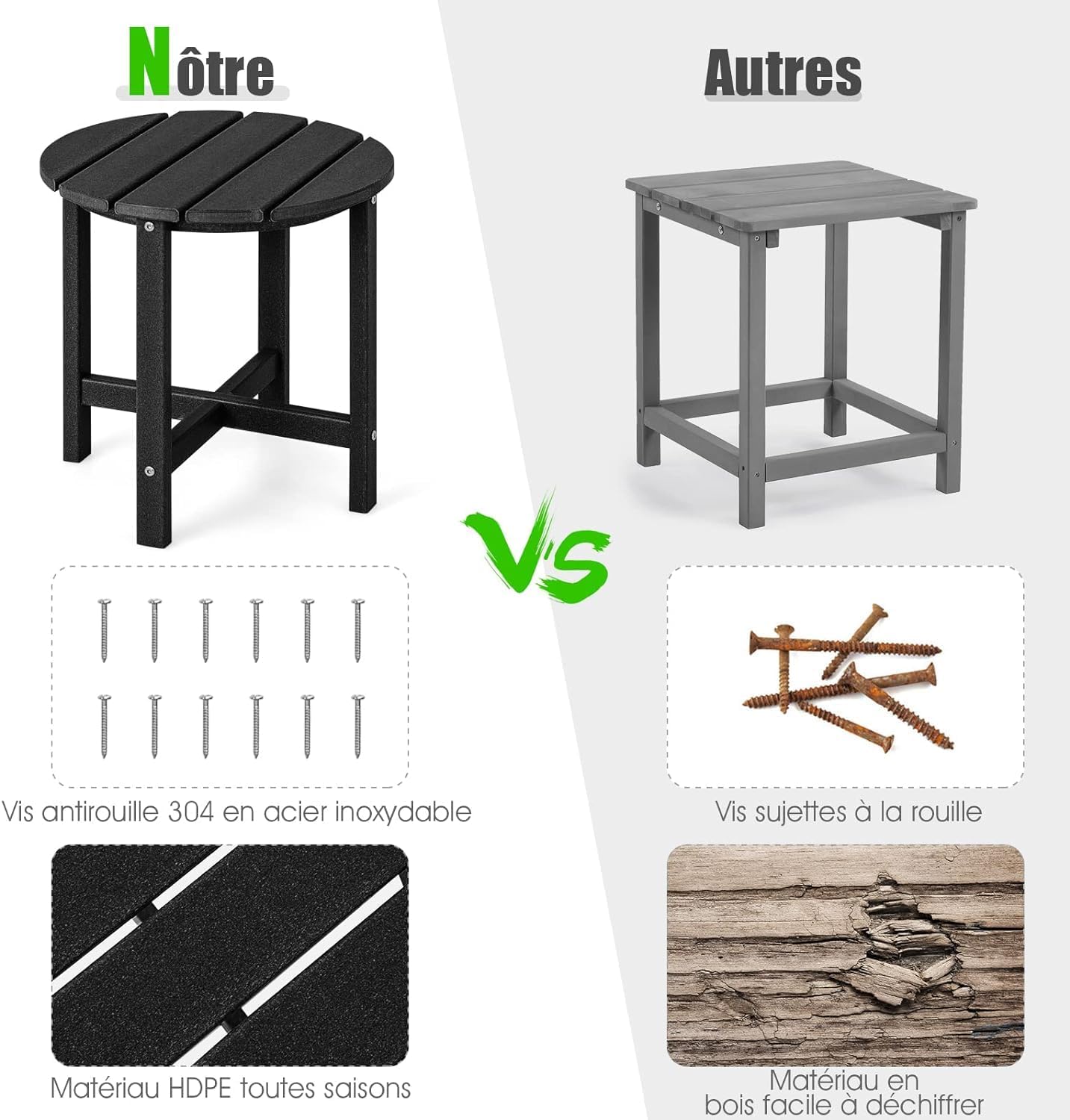 - Matériau durable : La table d'appoint est fabriquée en HDPE, résistant aux fissures, à la lumière et aux intempéries, ce qui la rend parfaite pour une utilisation en extérieur. Sa fonction étanche la rend encore plus durable.