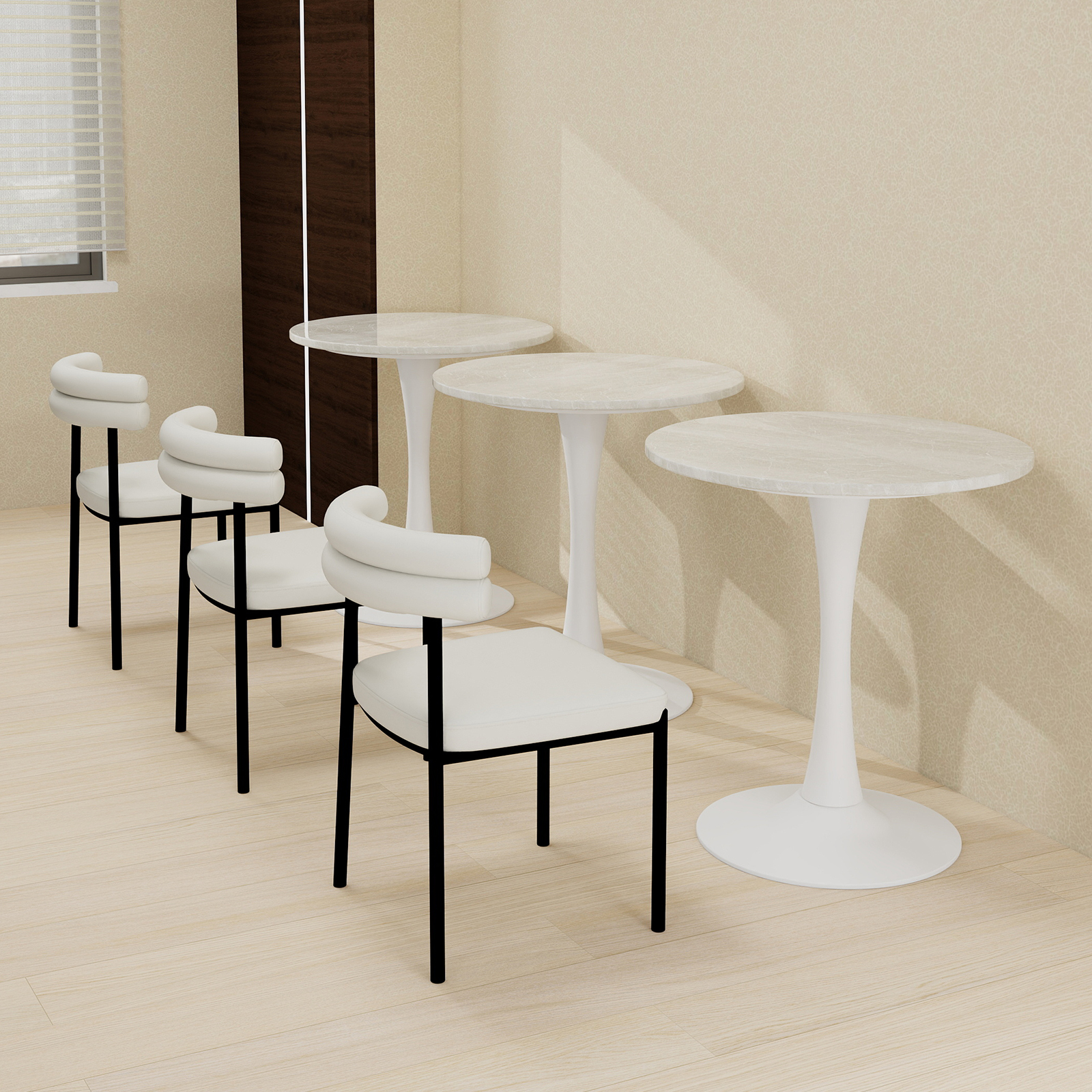 Adoptant un style moderne et minimaliste, cette table haute aux lignes fluides et épurées, dépourvue de fioritures, offre un rendu visuel sobre et élégant qui s'intègre facilement à différents styles de décoration.