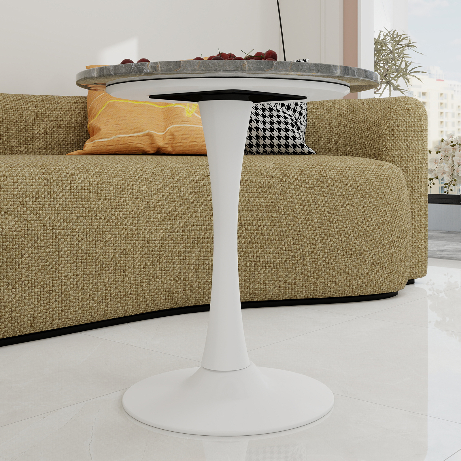 | Libellé | Table d’appoint ronde 70 cm gris foncé en marbre artificiel – petite table pour 1 à 2 personnes |