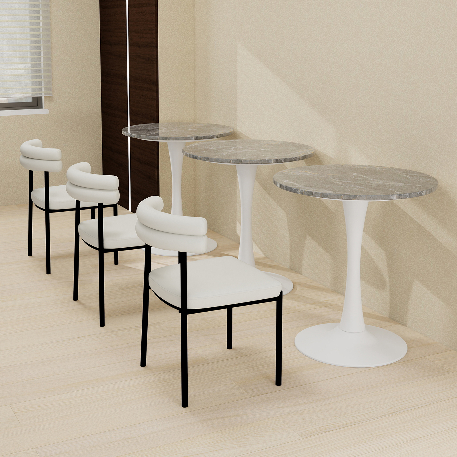 Adoptant un style moderne et minimaliste, cette table haute aux lignes fluides et épurées, dépourvue de fioritures, offre un rendu visuel sobre et élégant qui s'intègre facilement à différents styles de décoration.