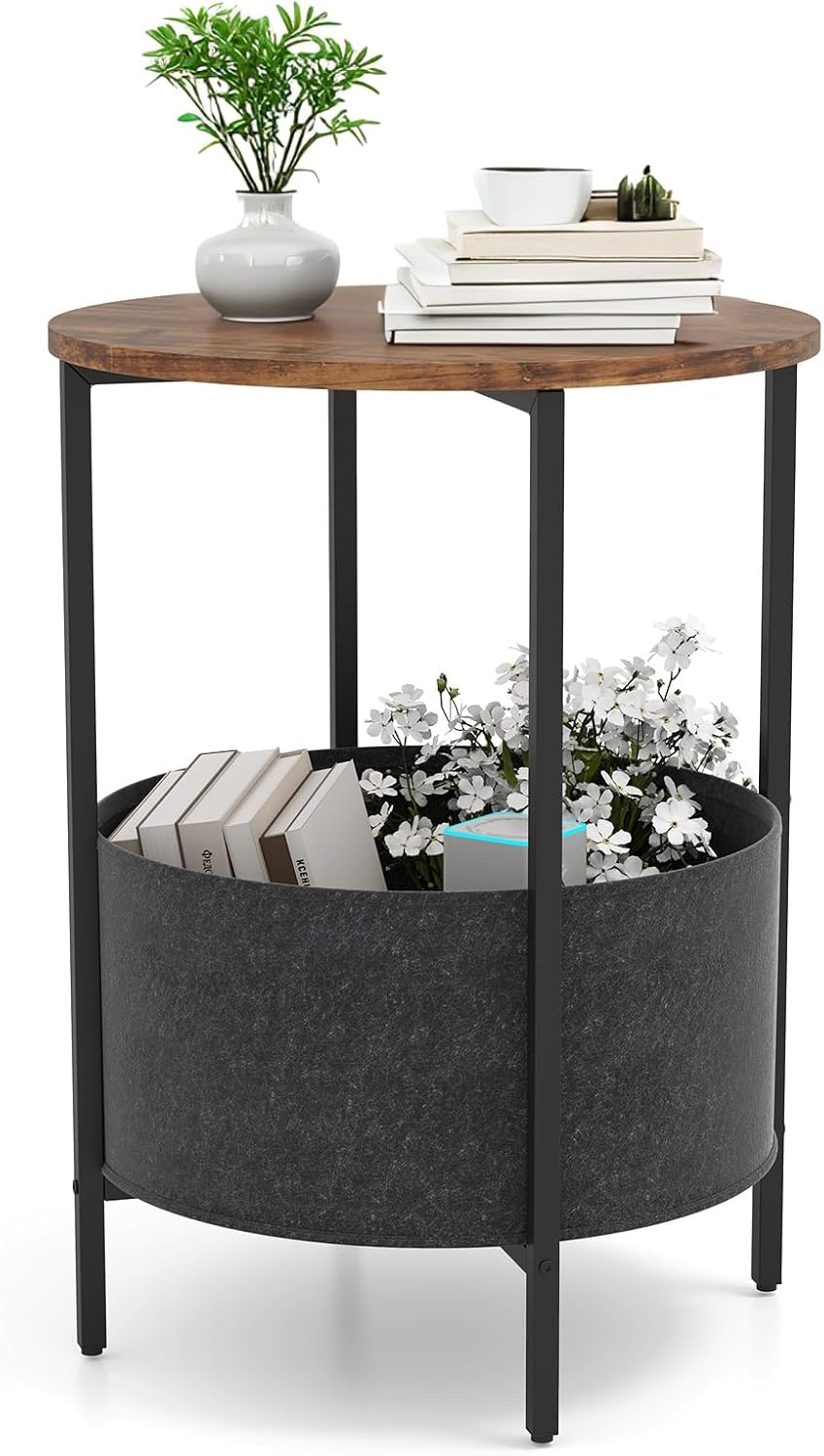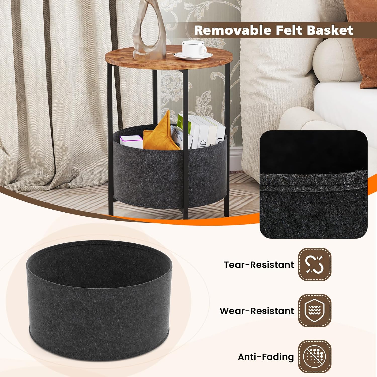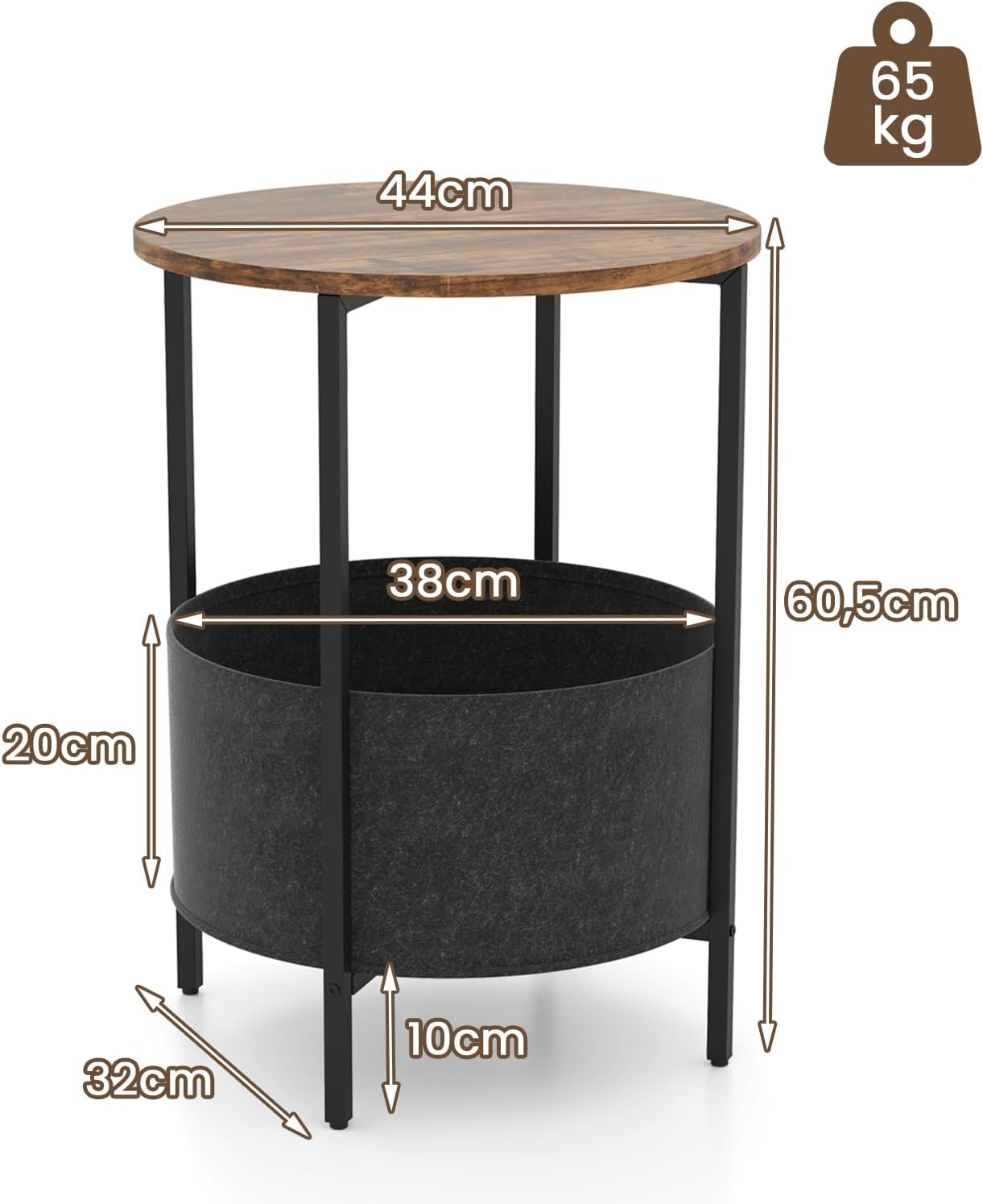 | Libellé | Table d'appoint ronde, bout de canapé avec 1 panier en tissu amovible, table de chevet industrielle |
