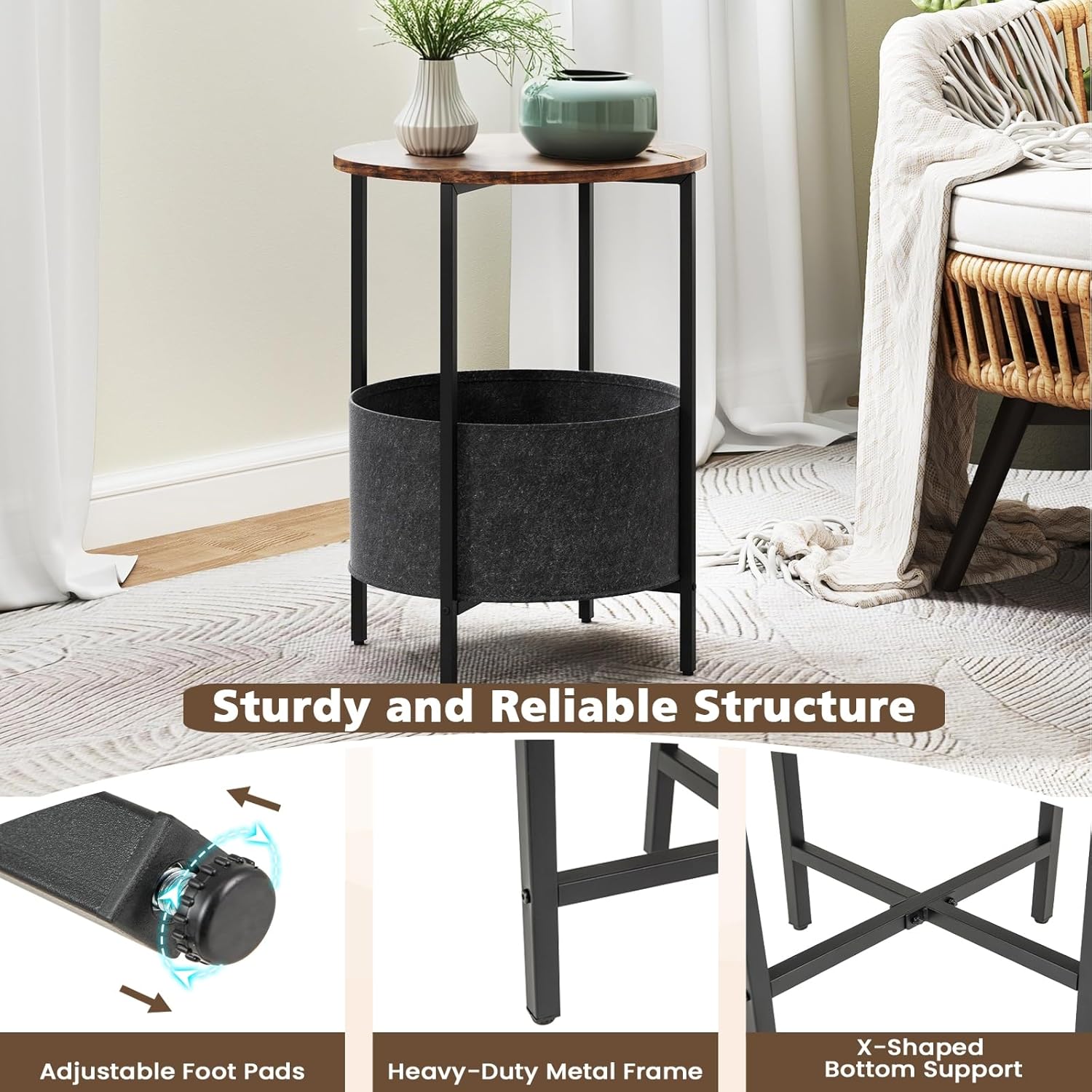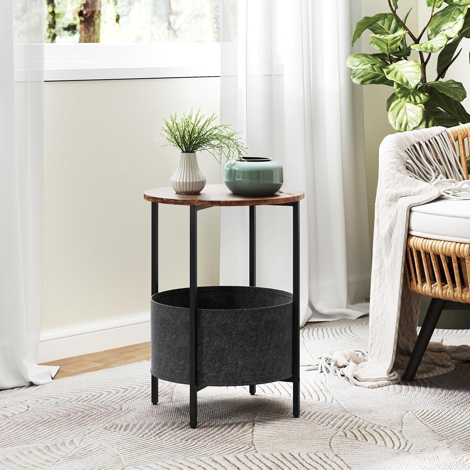 Table d'appoint ronde, bout de canapé avec 1 panier en tissu amovible, table de chevet industrielle