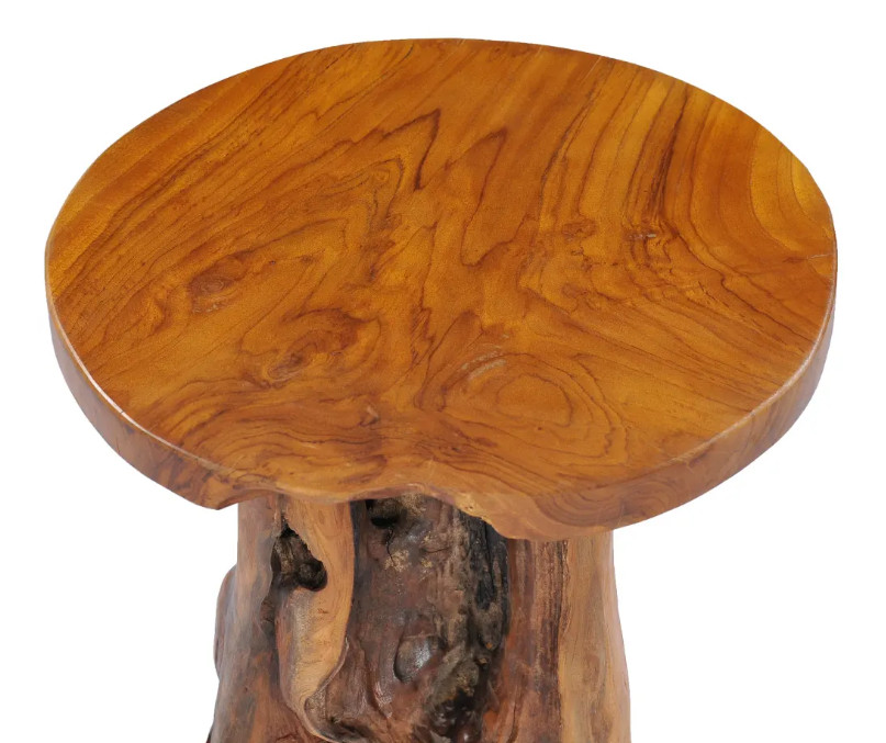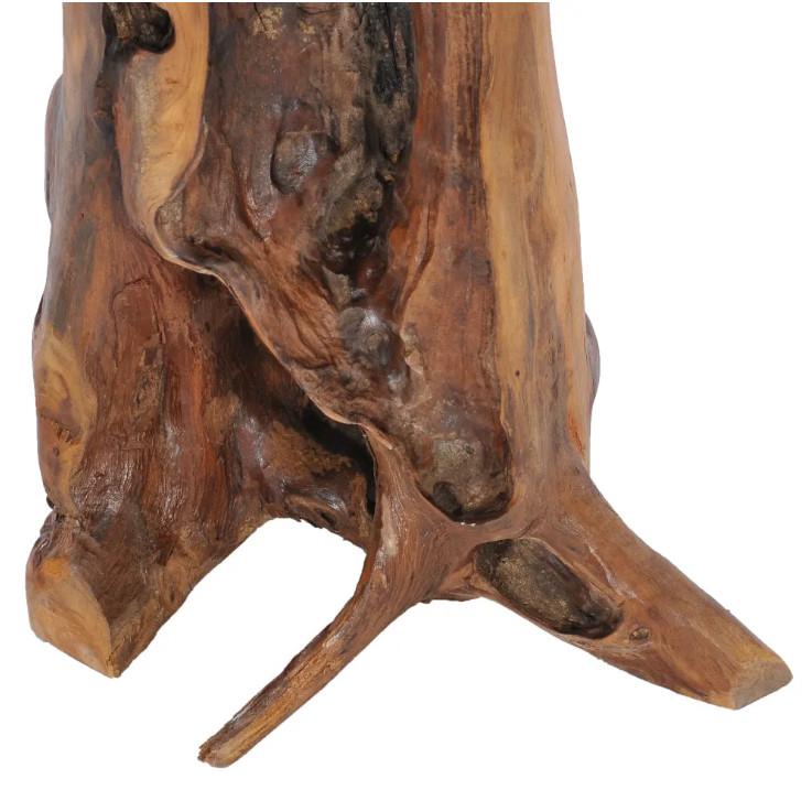 Cette table d'appoint ronde est fabriquée en bois massif de teck et peut également servir de table d'appoint ou de table auxiliaire. Le savoir-faire artisanal et les belles fibres du bois rendent chaque meuble unique et légèrement différent des autres. Conçue avec du bois massif son support est une racine de teck, cette table offre suffisamment d'espace pour ranger des livres, des magazines ou d'autres petits articles que vous aimeriez garder à portée de main. Cet article est déjà assemblé ; aucun assemblage n'est requis.