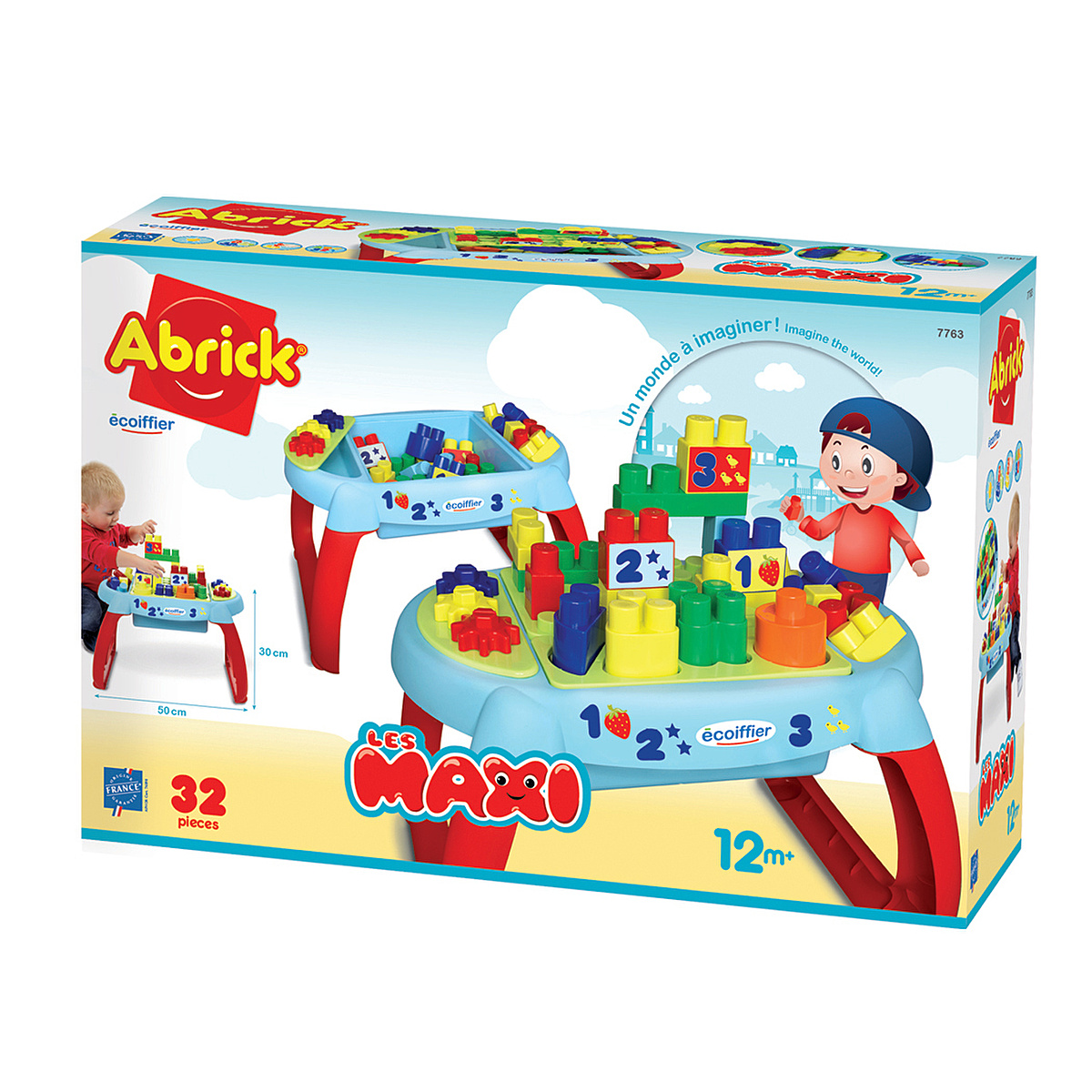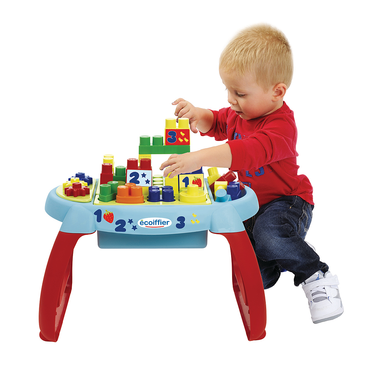 Une table déveil avec 23 briques, 4 formes, 3 engrenages et des rangements sous les plaques de jeu. Conseillé dès 12 mois. Origine France Garantie.