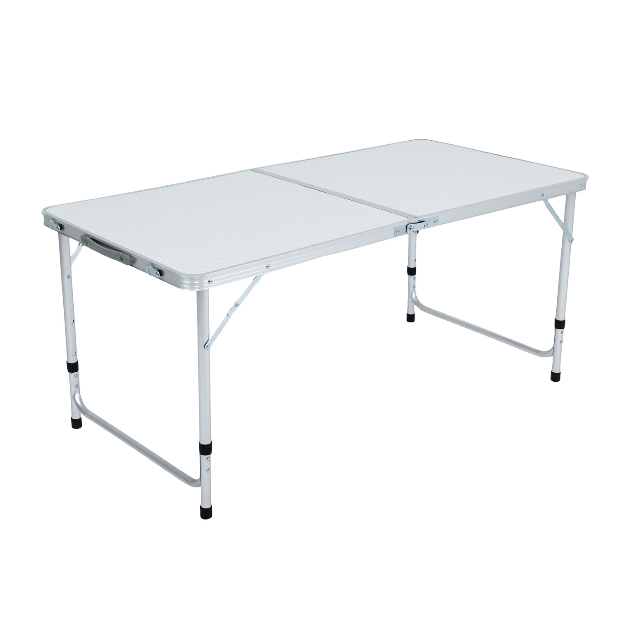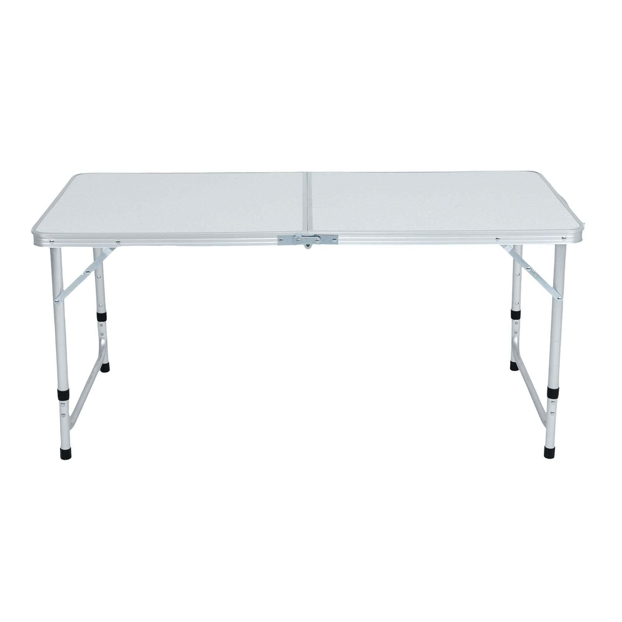 | Libellé | Table de Camping blanche avec 4 Chaises pliantes Grises, Dimensions : L120 x P60 x H70 cm |