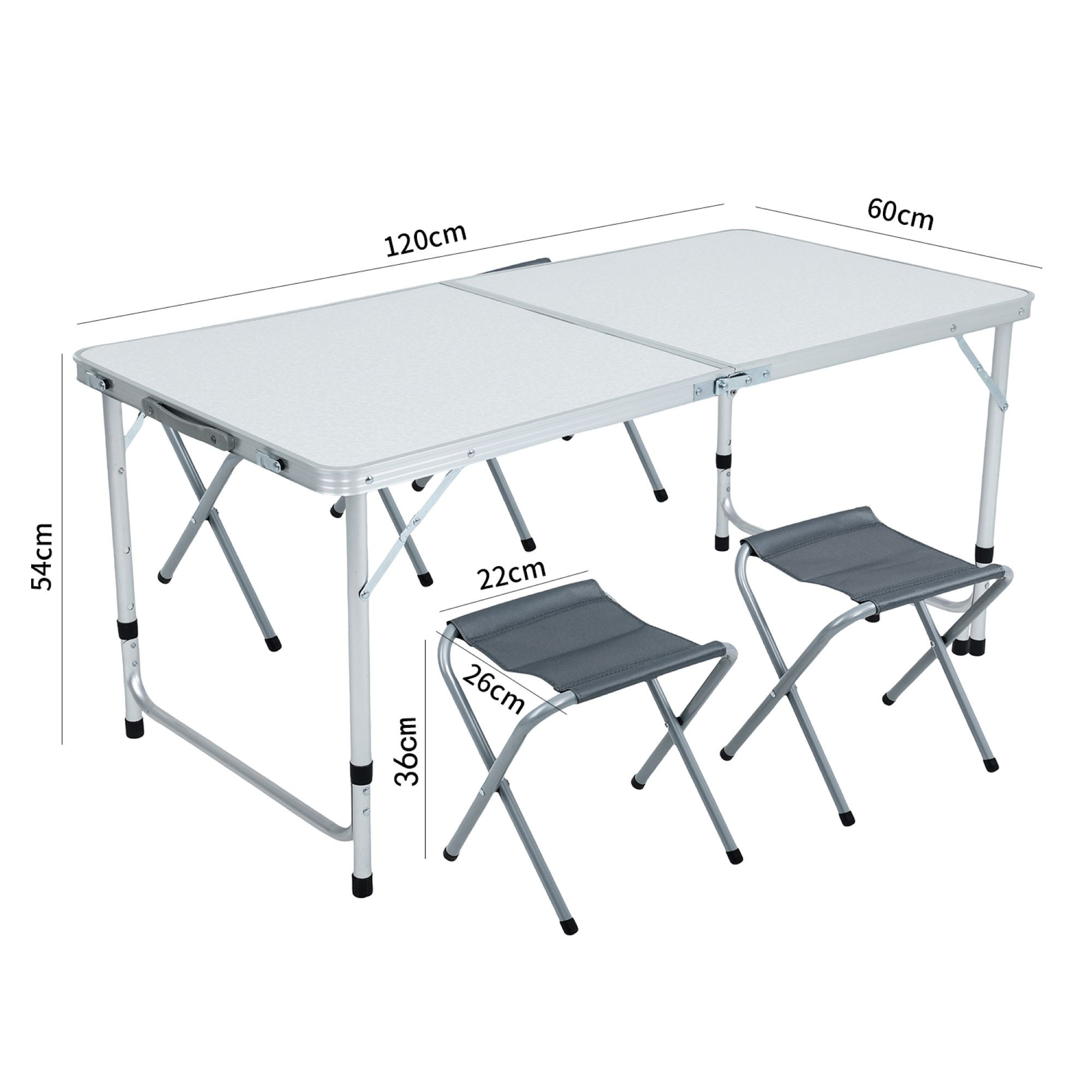 Table de Camping blanche avec 4 Chaises pliantes Grises, Dimensions : L120 x P60 x H70 cm
