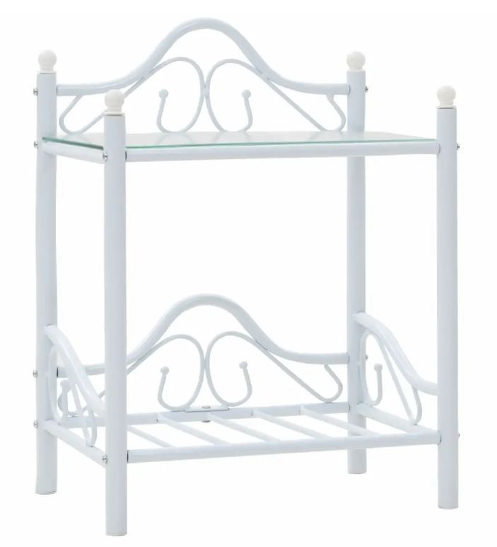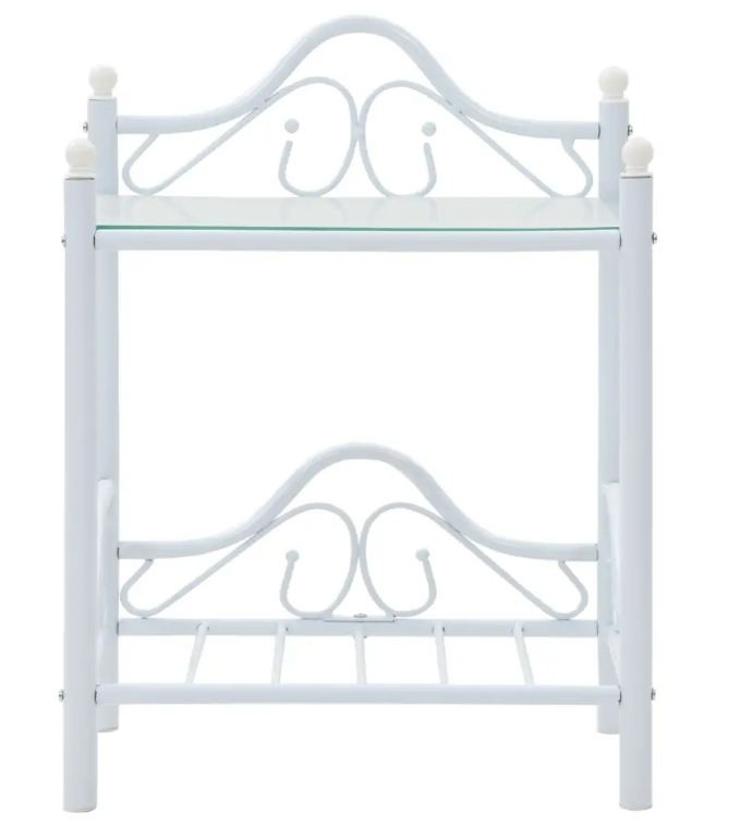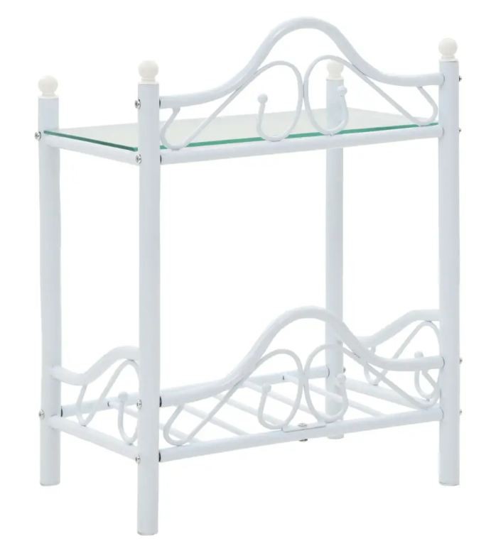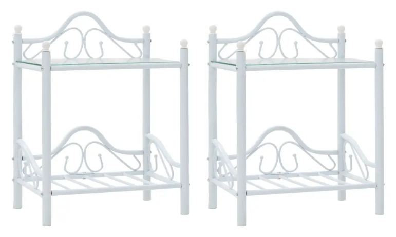 Table de chevet 2 étagères métal blanc et verre trempé Pounky - Lot de 2