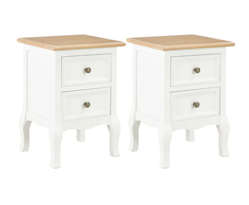 | Libellé | Table de chevet 2 tiroirs bois clair et blanc Naomie - Lot de 2 |