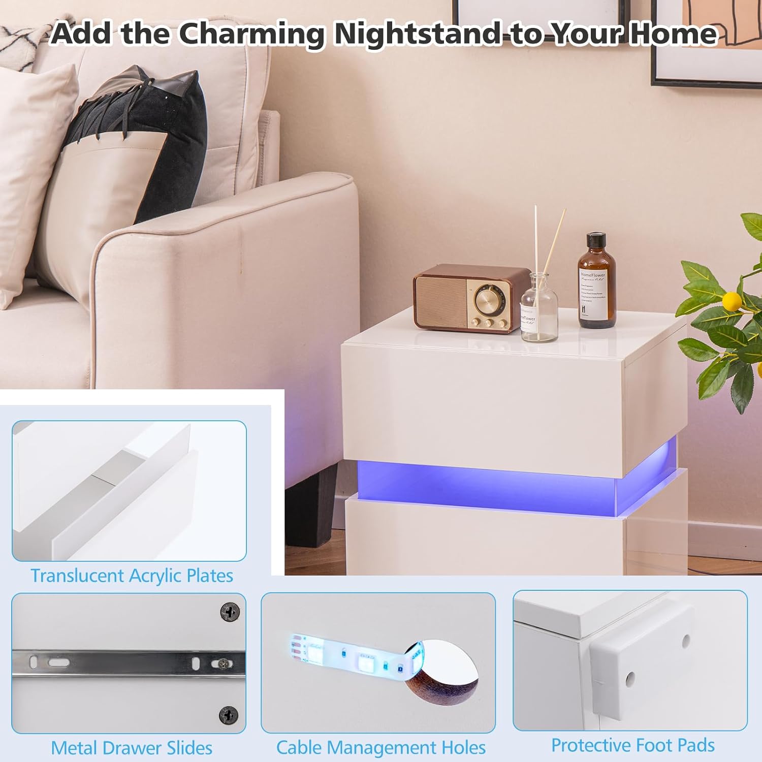 - Polyvalence et montage facile : Cette table de chevet moderne avec lumières LED est parfaite pour la chambre à coucher, le salon ou le couloir. Le montage est simple grâce aux instructions détaillées et aux accessoires inclus.