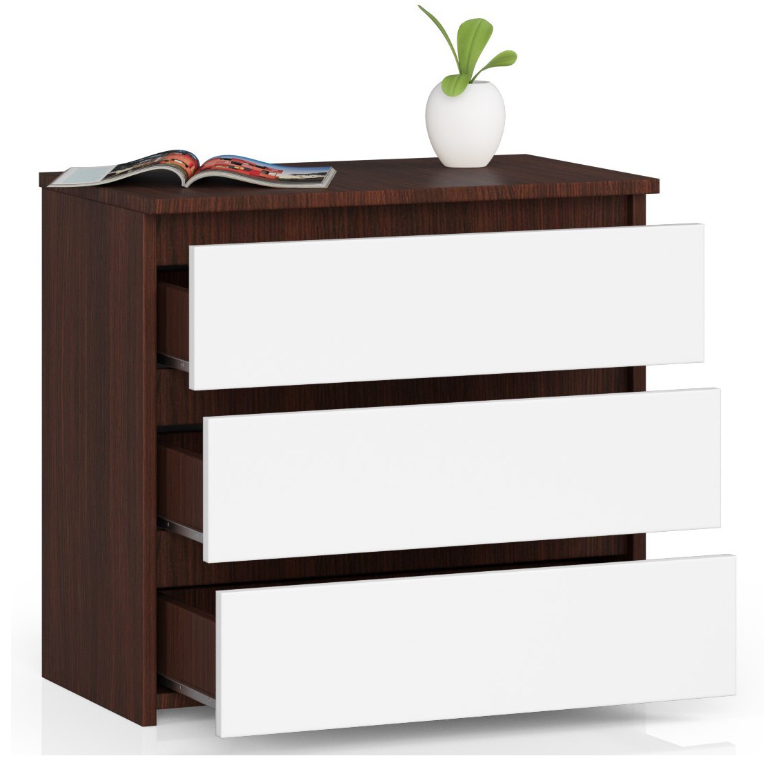 Table de chevet AKORD Wengé 60 cm 3 tiroirs façade Blanche 60x35x57 cm