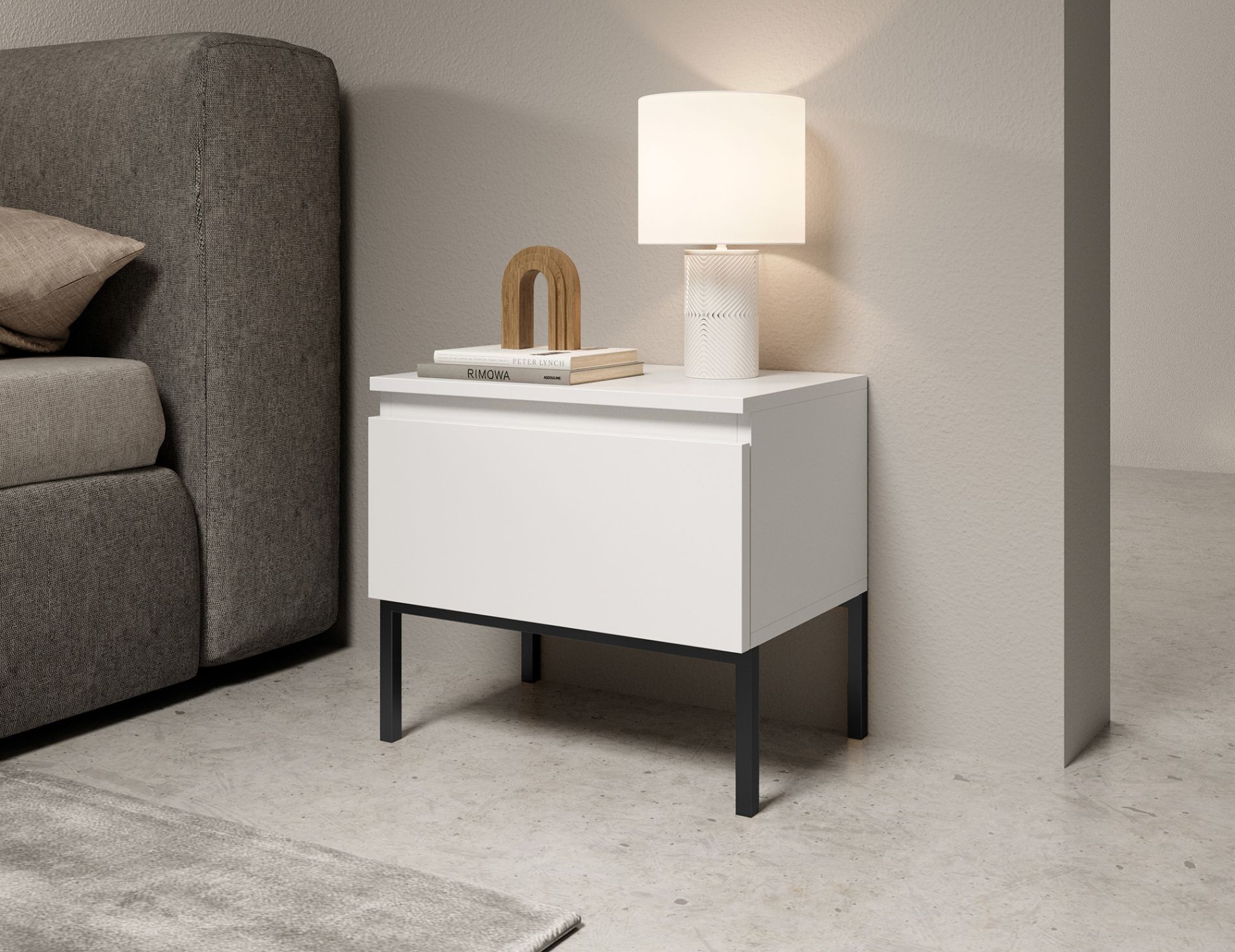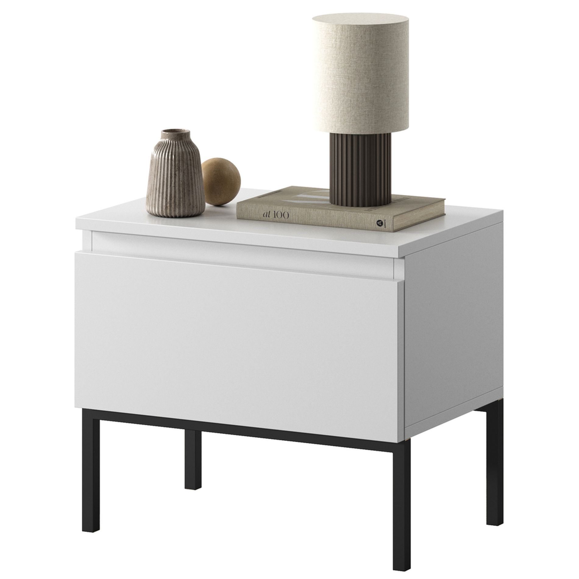 Table de chevet blanc avec pieds noirs BEMMI
