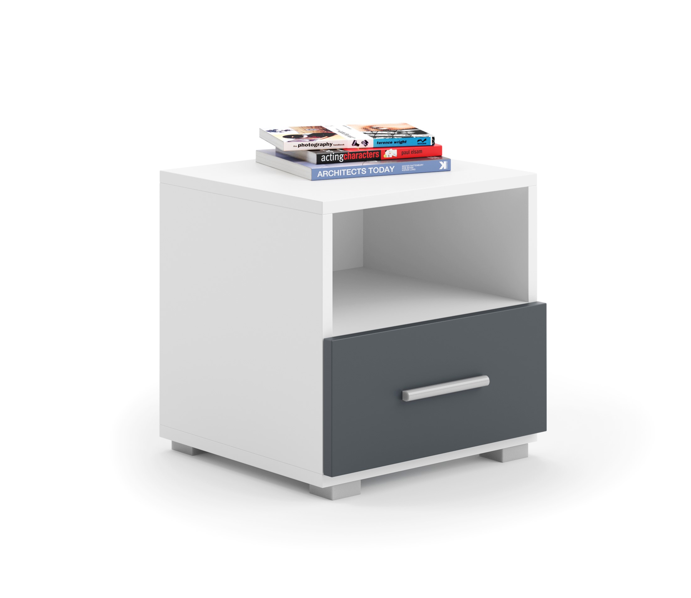 Table de chevet "EMI" avec tiroir.. Dimensions : 40,5 cm x 37 cm x 40 cm. Construction durable et solide. Planche de meuble laminé. Tiroir fonctionnel et spacieux. Le produit est composé de matières premières certifiées. Le produit est destiné à l'auto-assemblage.