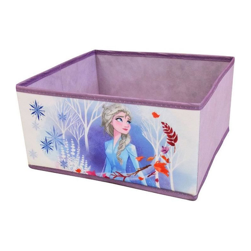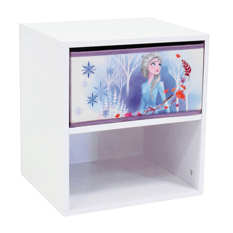 Voici une table de nuit Reine des Neiges 2 au joli motif Elsa composé de 2 compartiments et d'un tiroir en tissu.